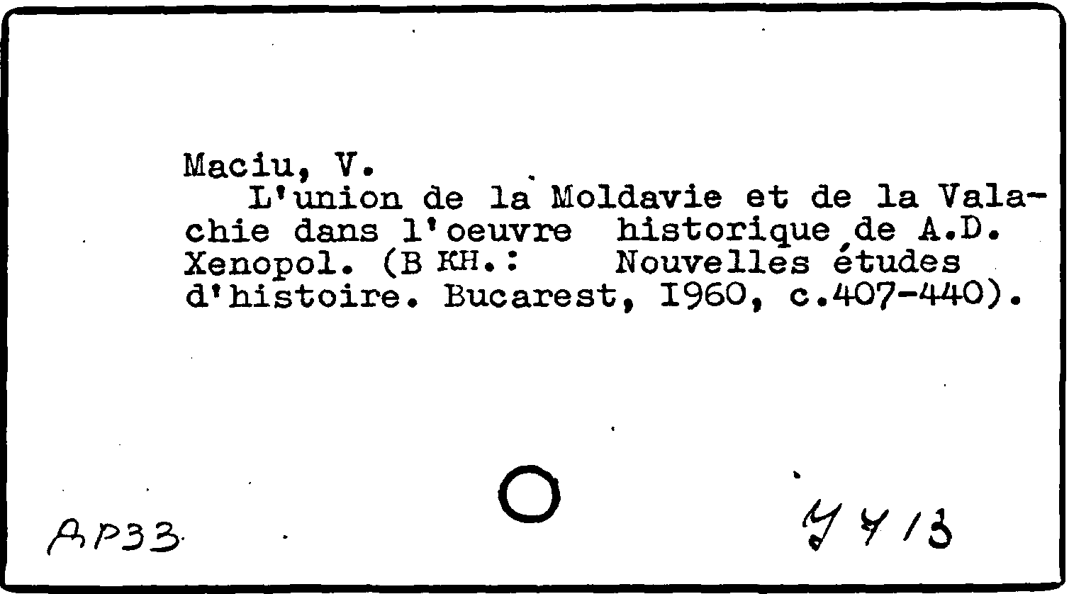 L'union de la Moldavie et de la Valaechie dans l'oeuvre historique de A. D. Xenopol