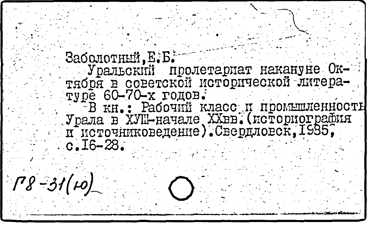 Уральский пролетариат накануне Октября в советской исторической литературе 60-70-х годов