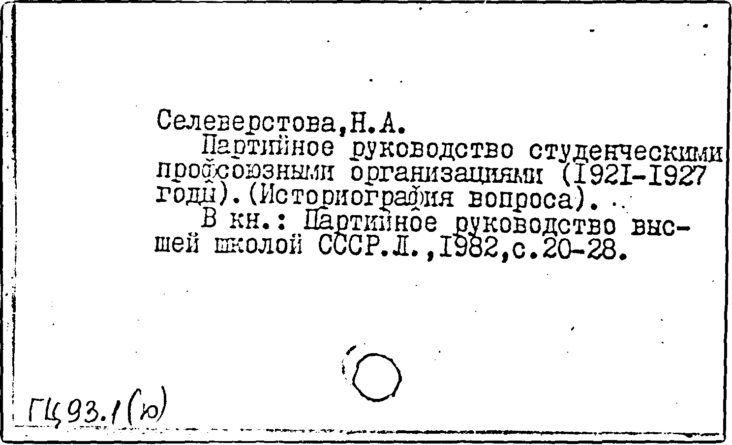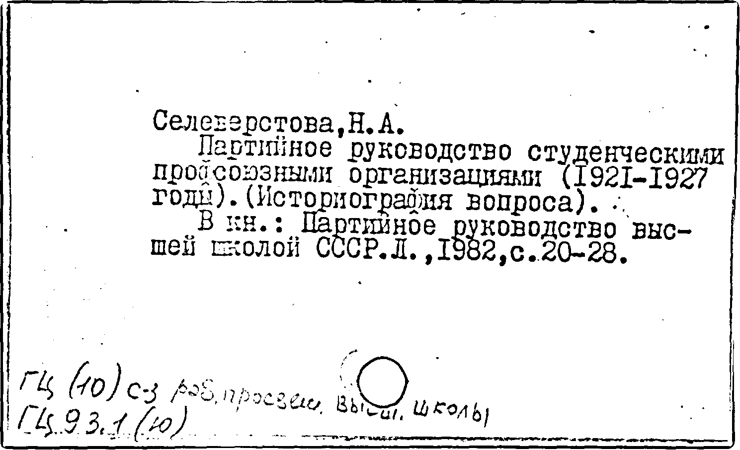 Книга (аналит. описание): Партийное руководство студенческими профсоюзными организациями (1921-1927 годы)