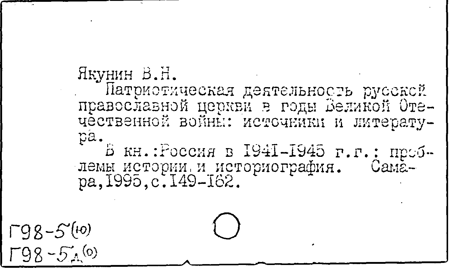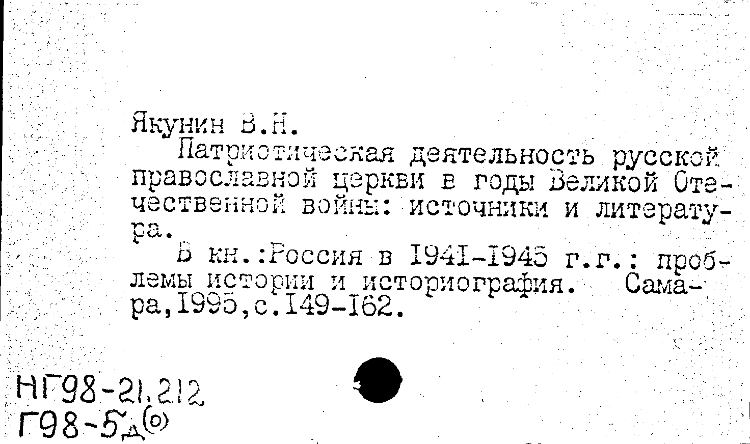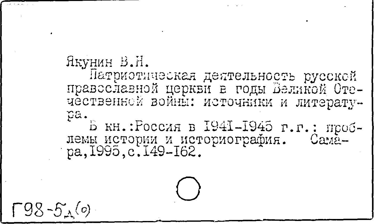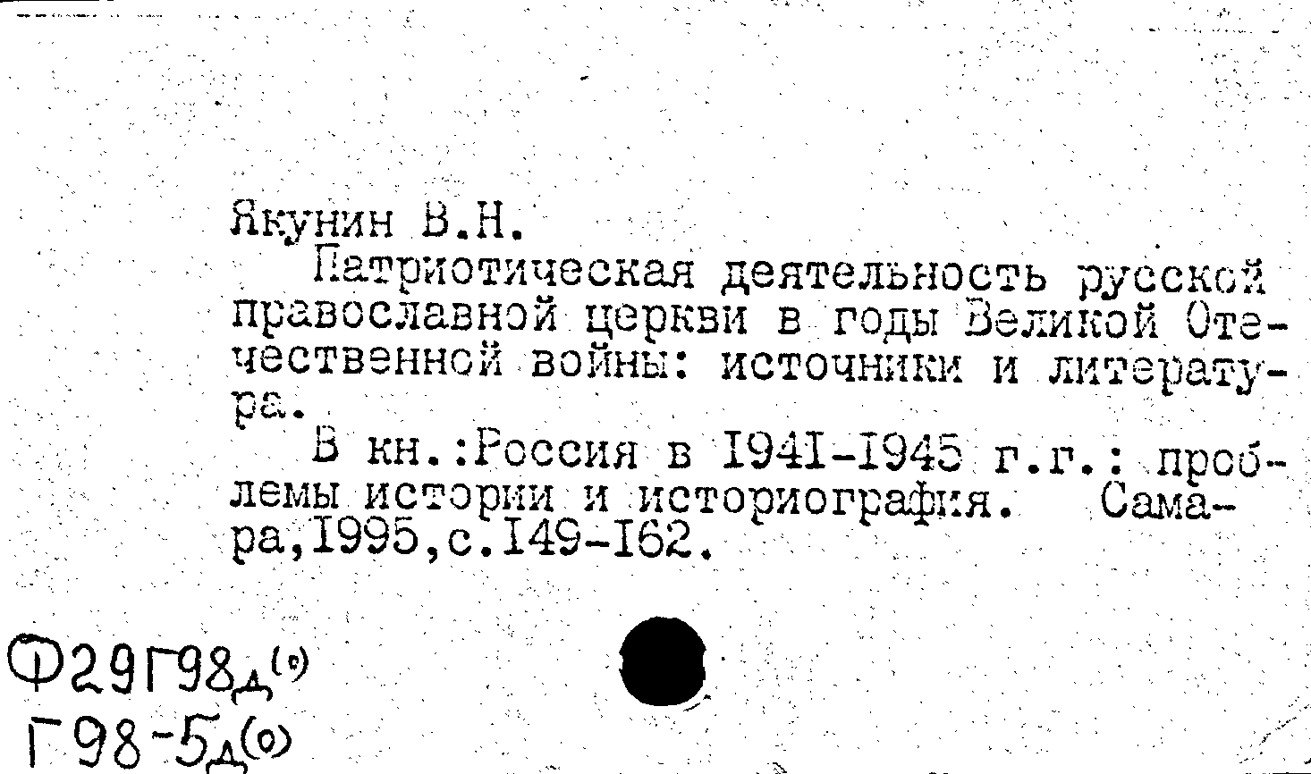 Книга (аналит. описание): Патриотическая деятельность русской православной церкви в годы Великой Отечественной войны: источники и литература