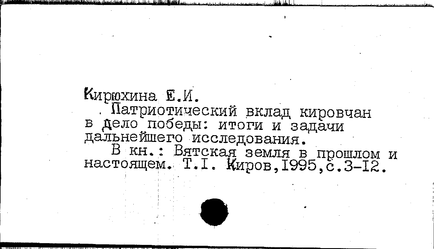 Патриотический вклад кировчан в дело победы: итоги и задачи дальнейшего исследования