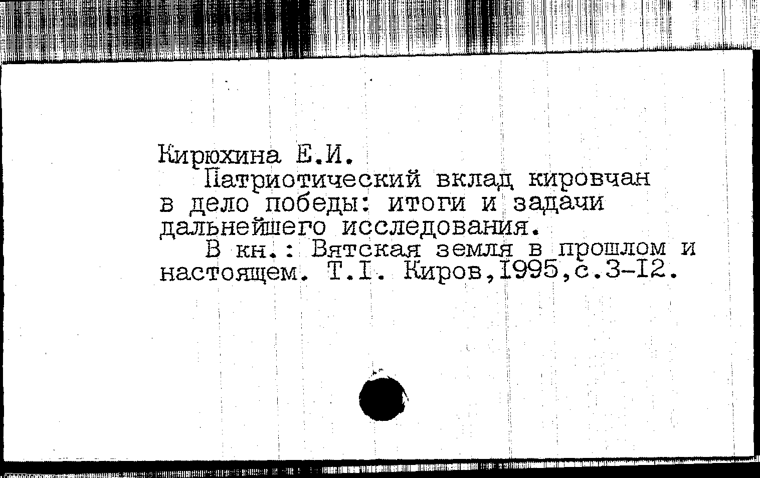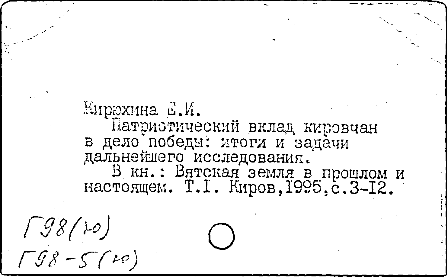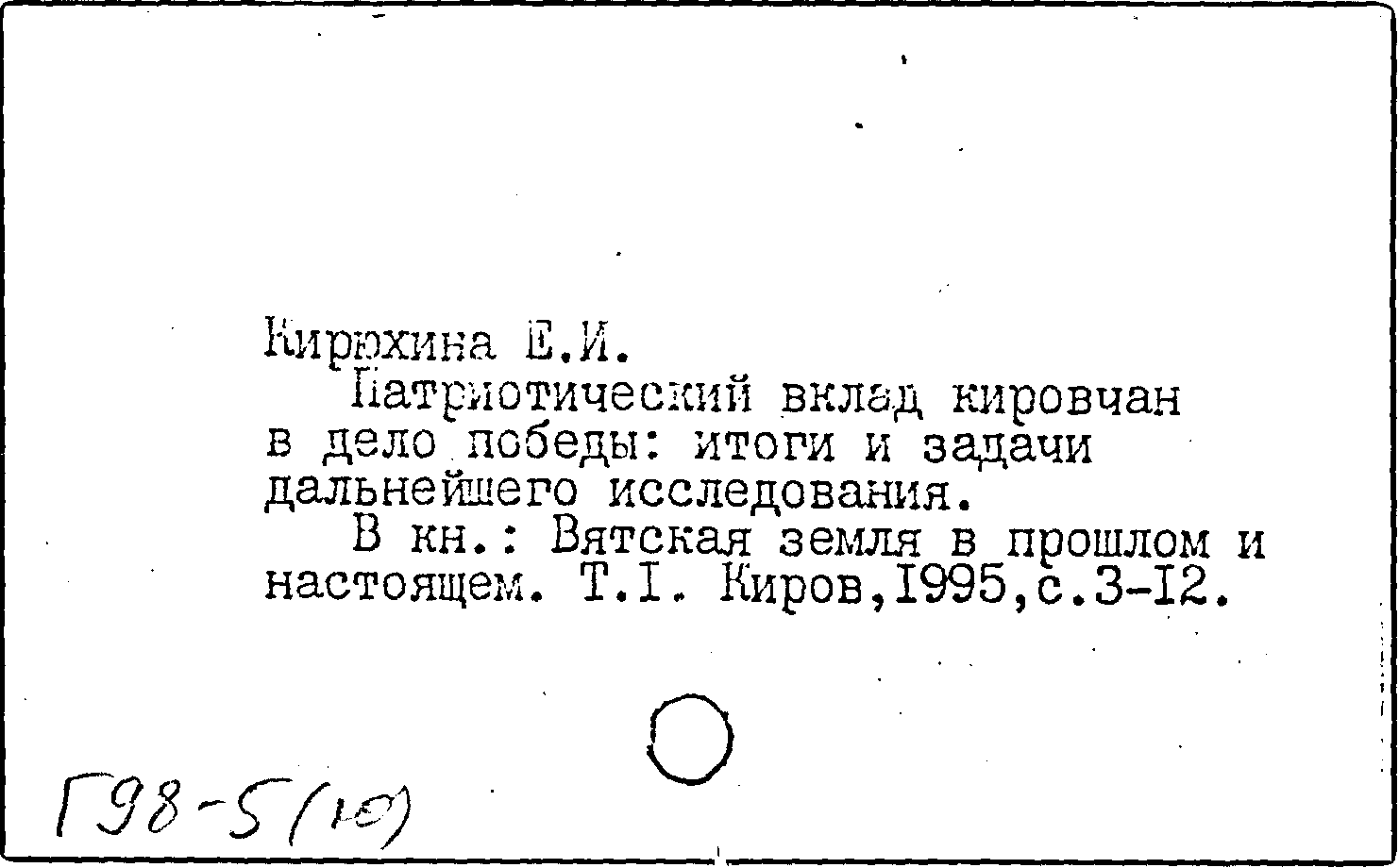 Книга (аналит. описание): Патриотический вклад кировчан в дело победы: итоги и задачи дальнейшего исследования