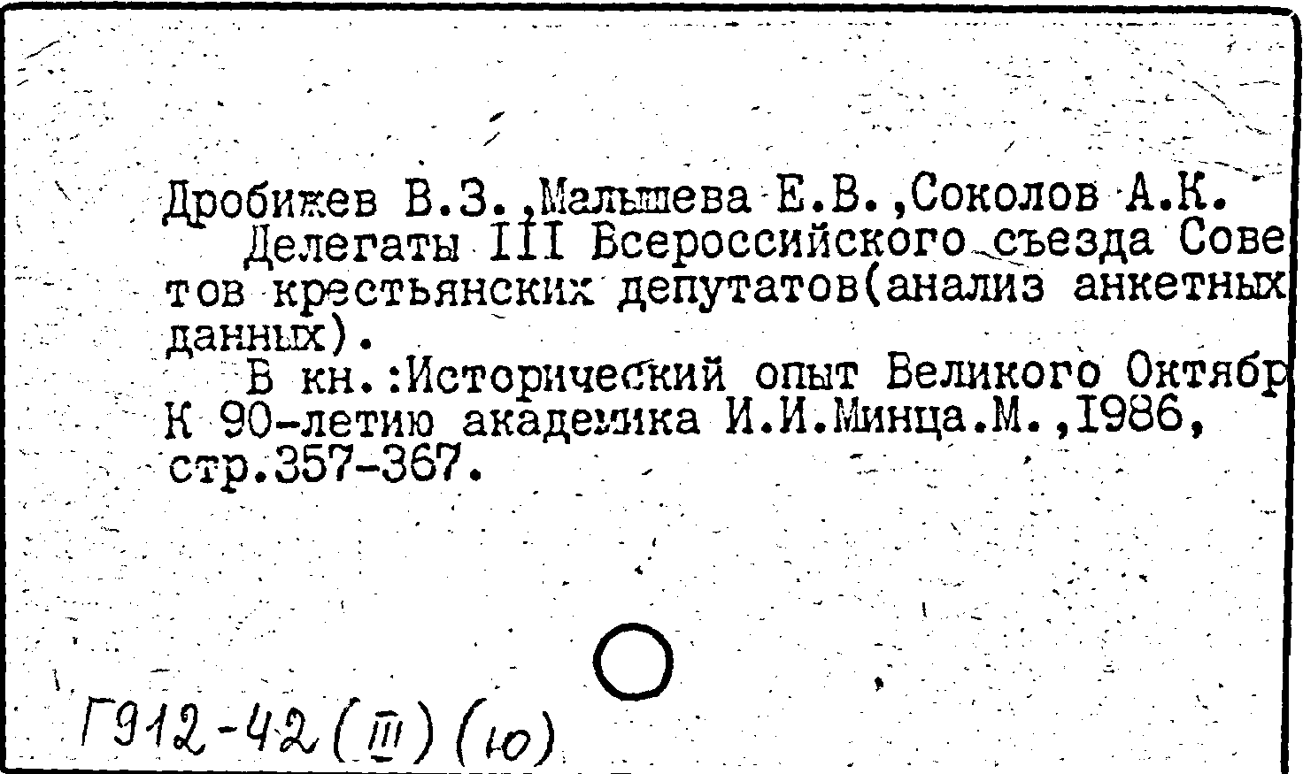 Книга (аналит. описание): Делегаты III Всероссийского съезда Советов крестьянских депутатов (анализ анкетных данных)