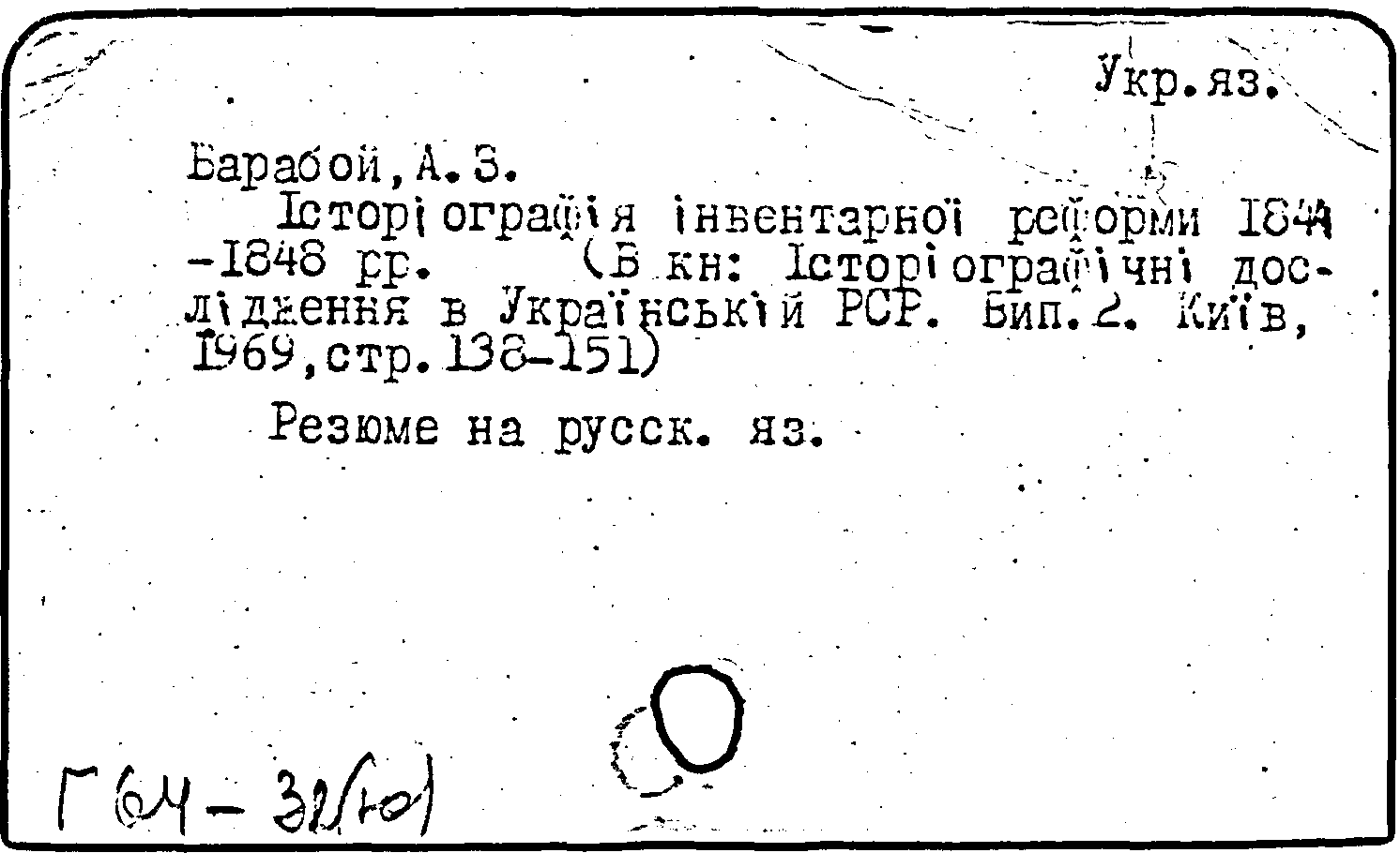 Книга (аналит. описание): Iсторiографiя iнвентарноi реформи 1844-1848 рр.