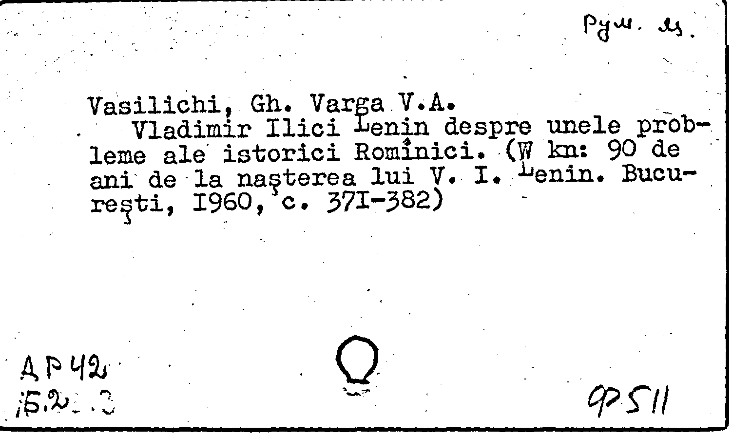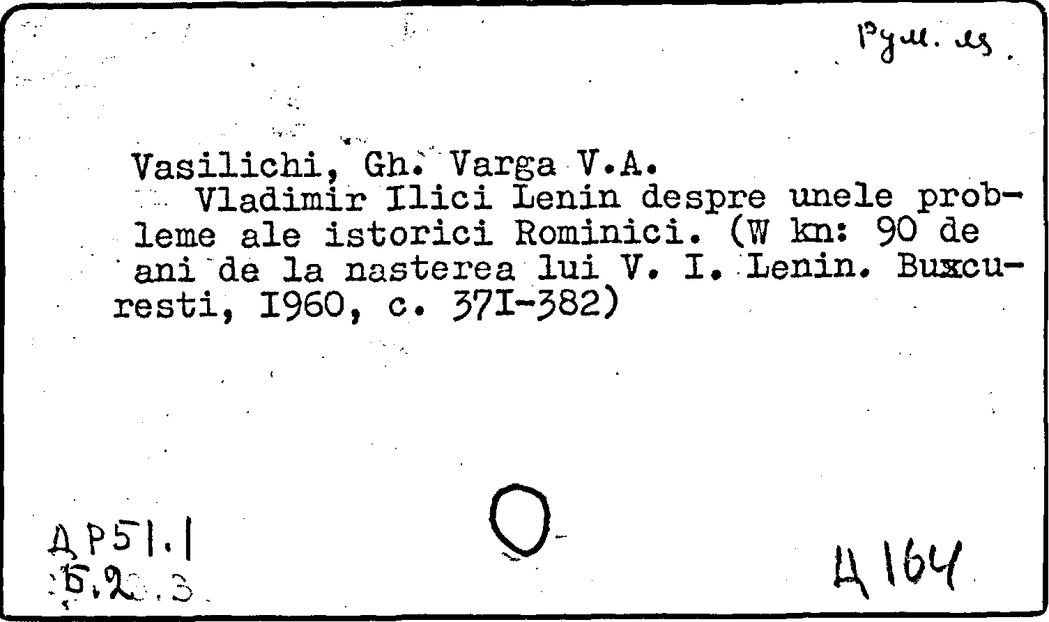 Книга (аналит. описание): Vladimir Ilici Lenin despre unele probleme ale istorici Rominici