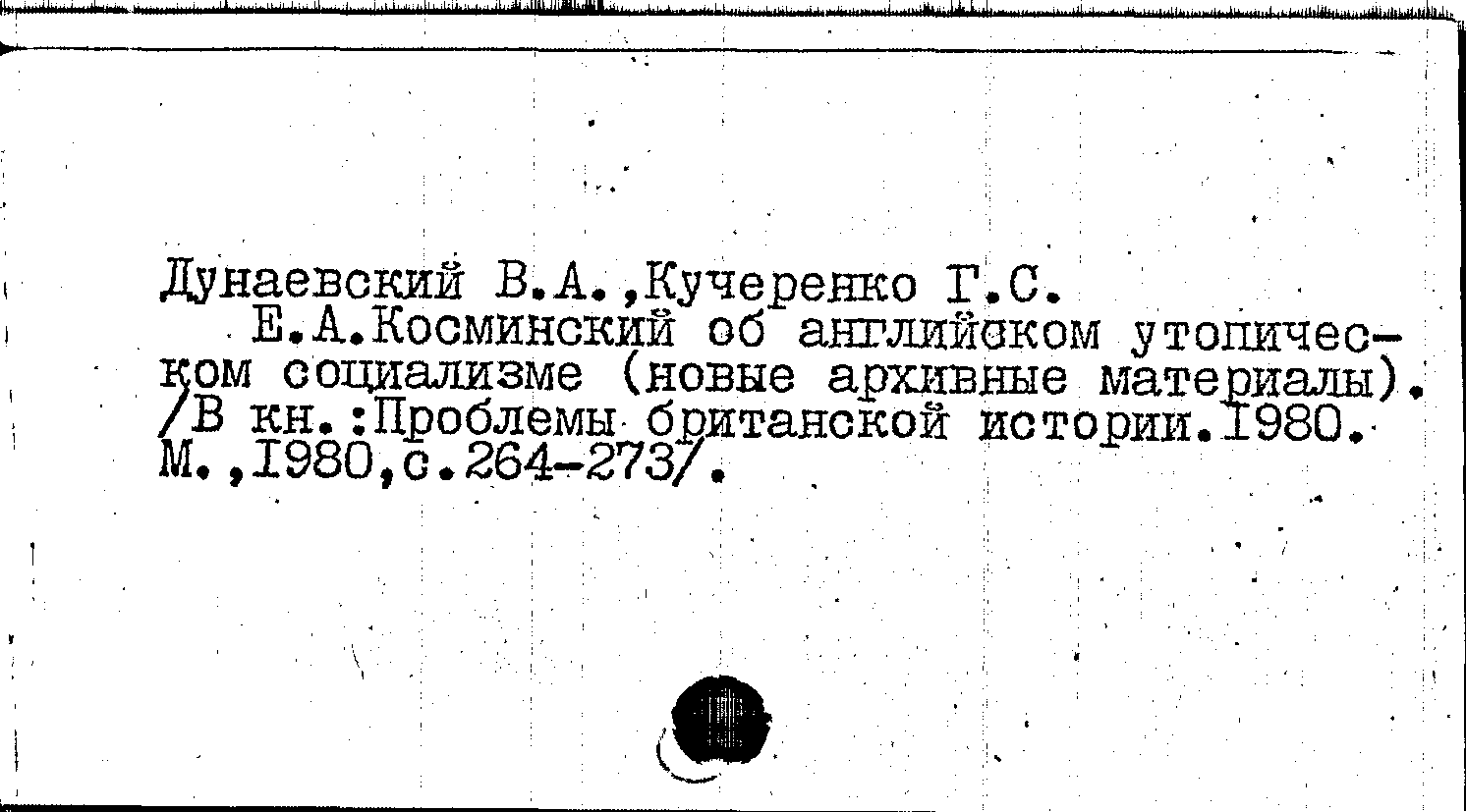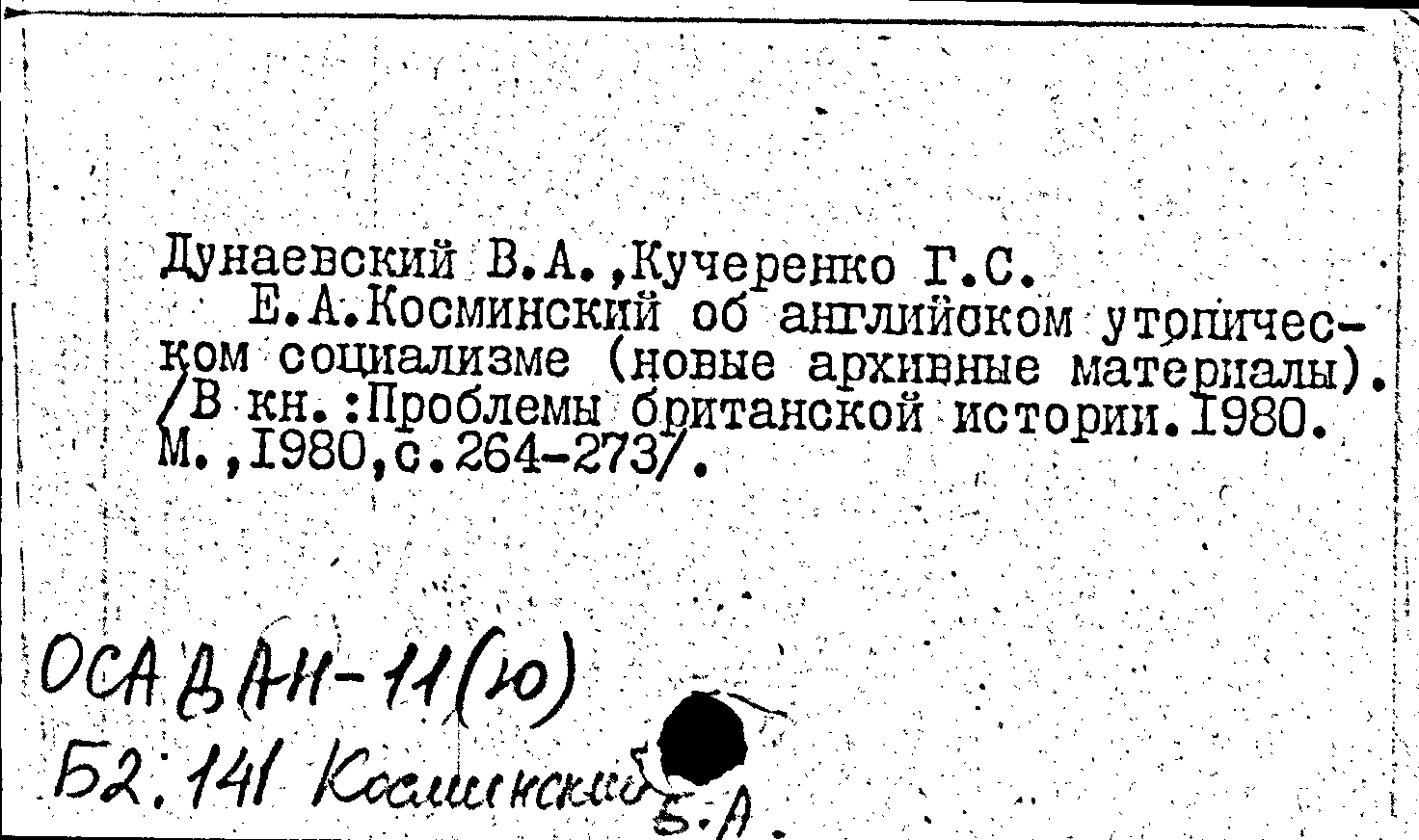 Е. А. Косминский об английском утопическом социализме (новые архивные материалы)