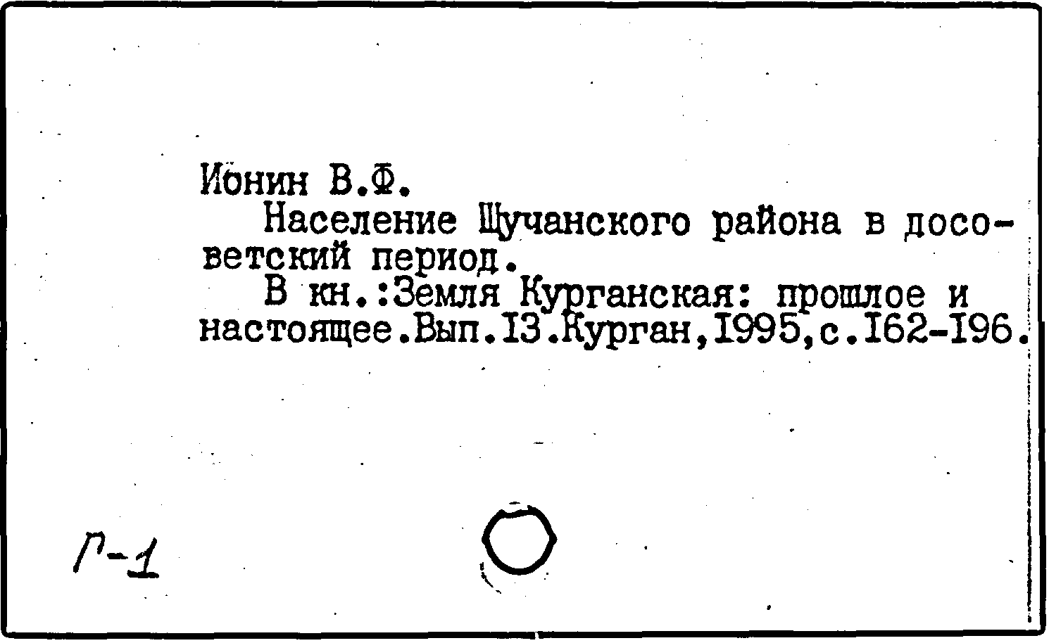 Книга (аналит. описание): Население Щучанского района в досоветский период