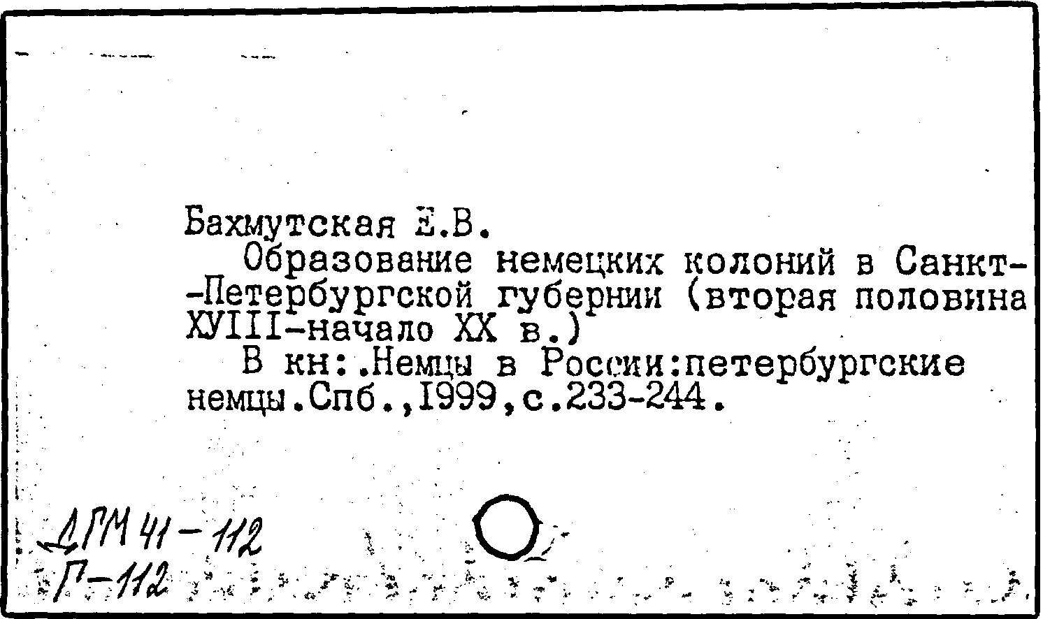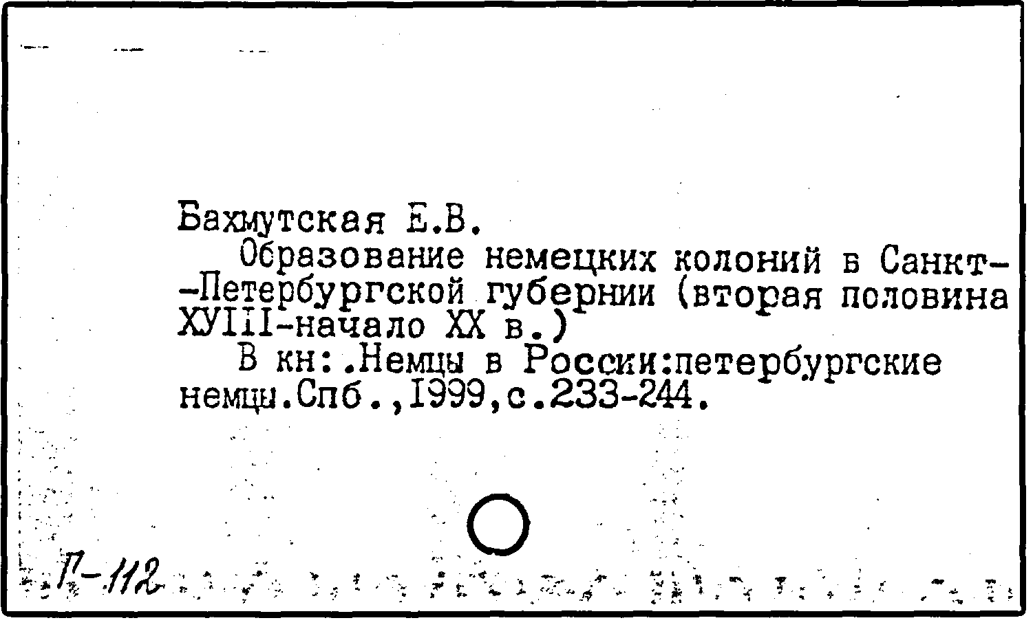 Образование немецких колоний в Санкт-Петербургской губернии (вторая половина XVIII - начало XX в.)