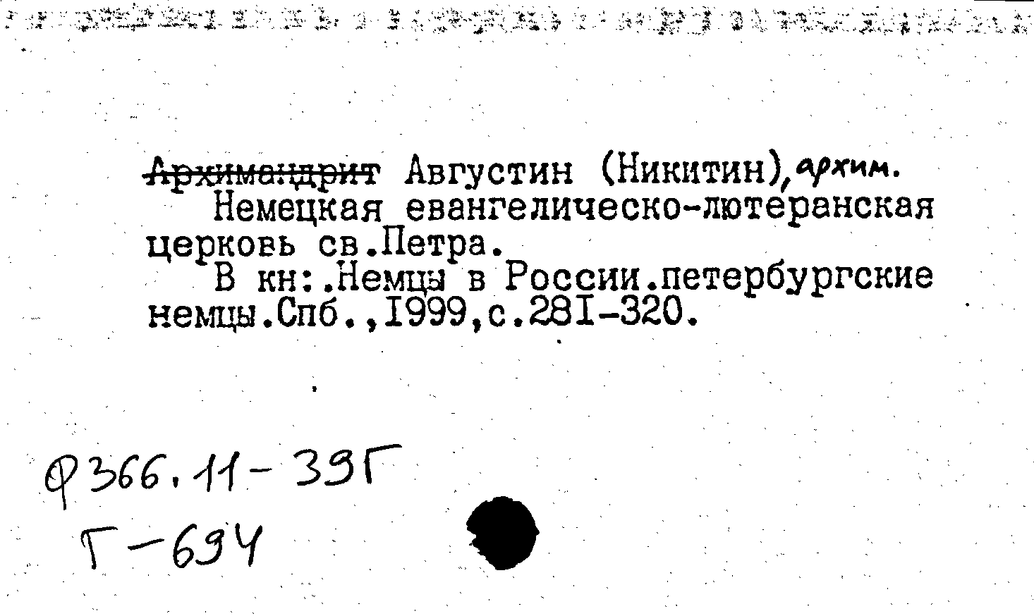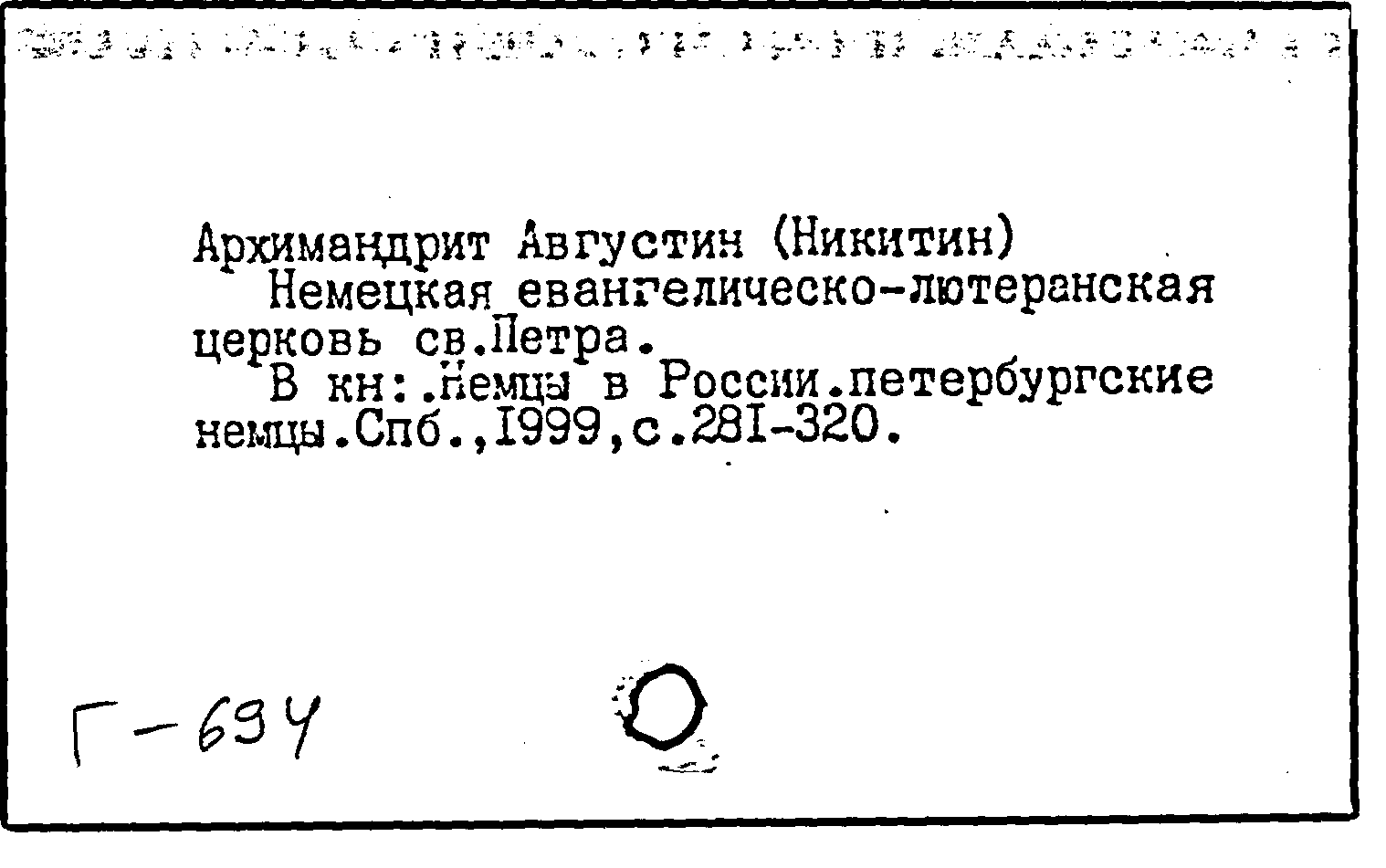 Книга (аналит. описание): Немецкая евангелическо-лютеранская церковь св. Петра