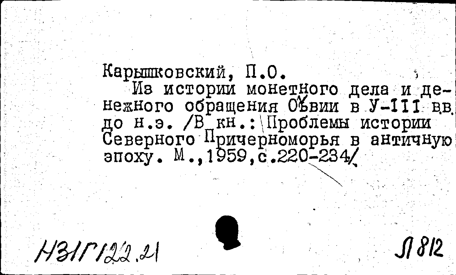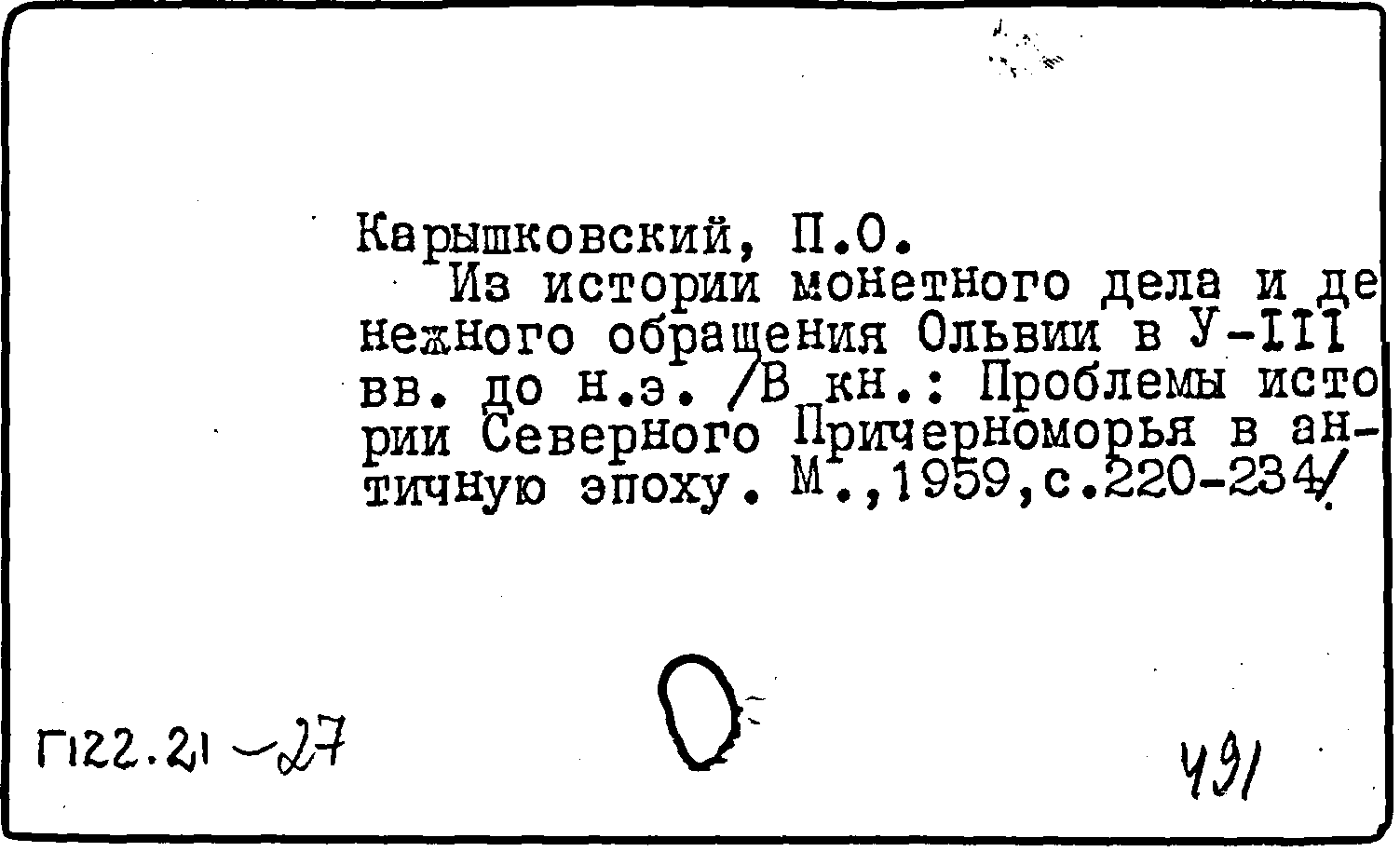 Книга (аналит. описание): Из истории монетного дела и денежного обращения Ольвии в V-III вв. до н. э.