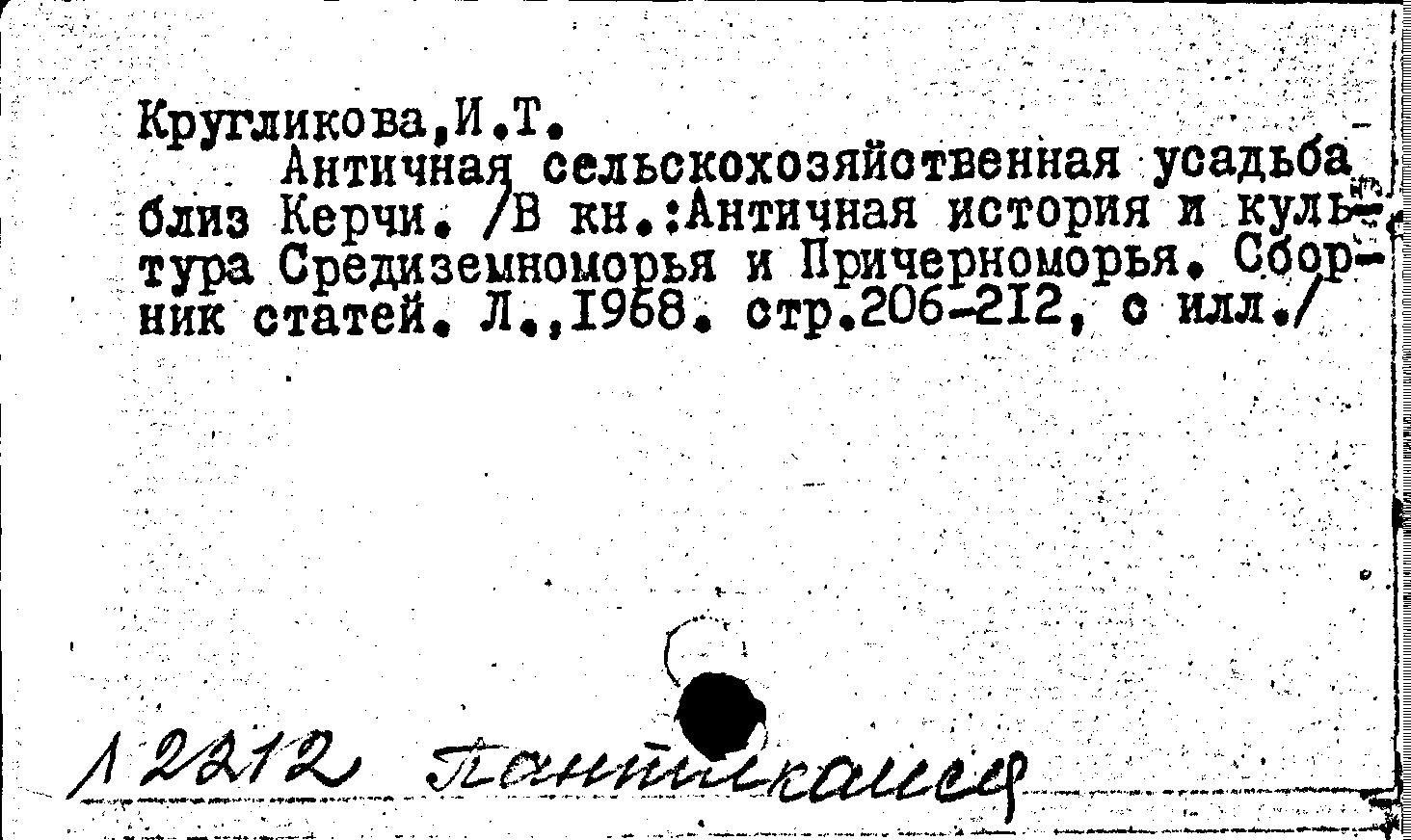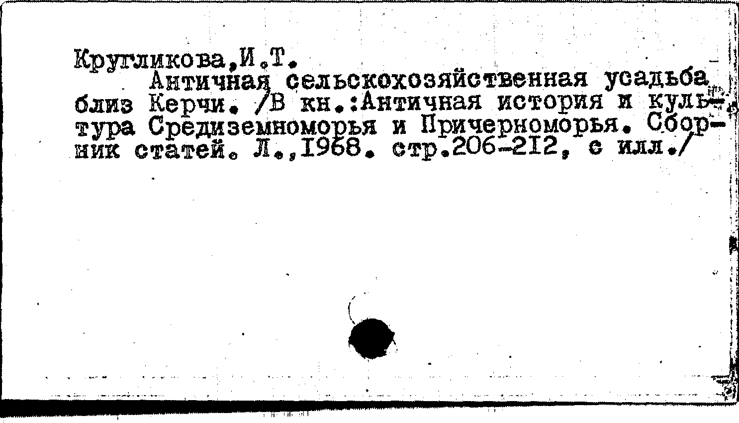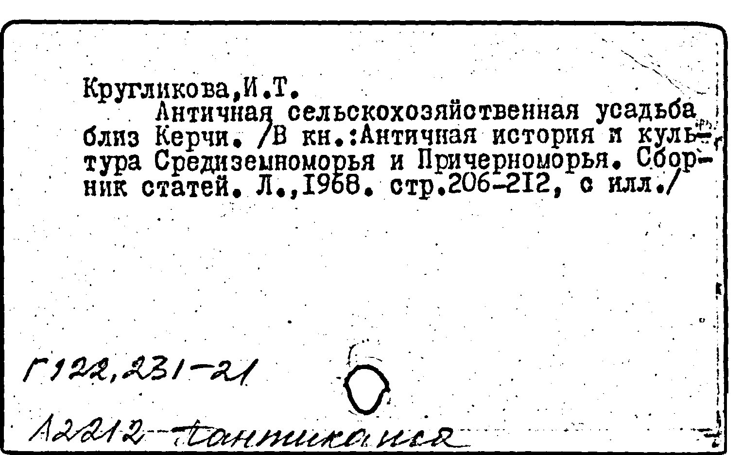 Книга (аналит. описание): Античная сельскохозяйственная усадьба близ Керчи
