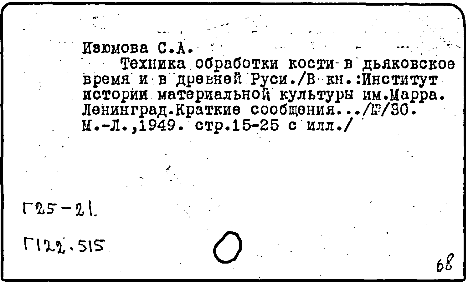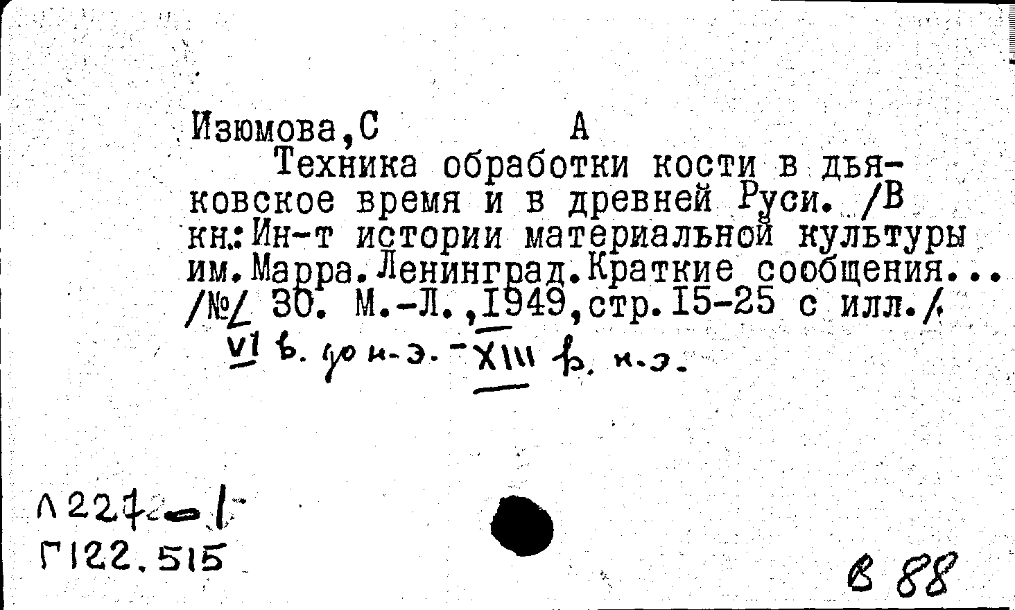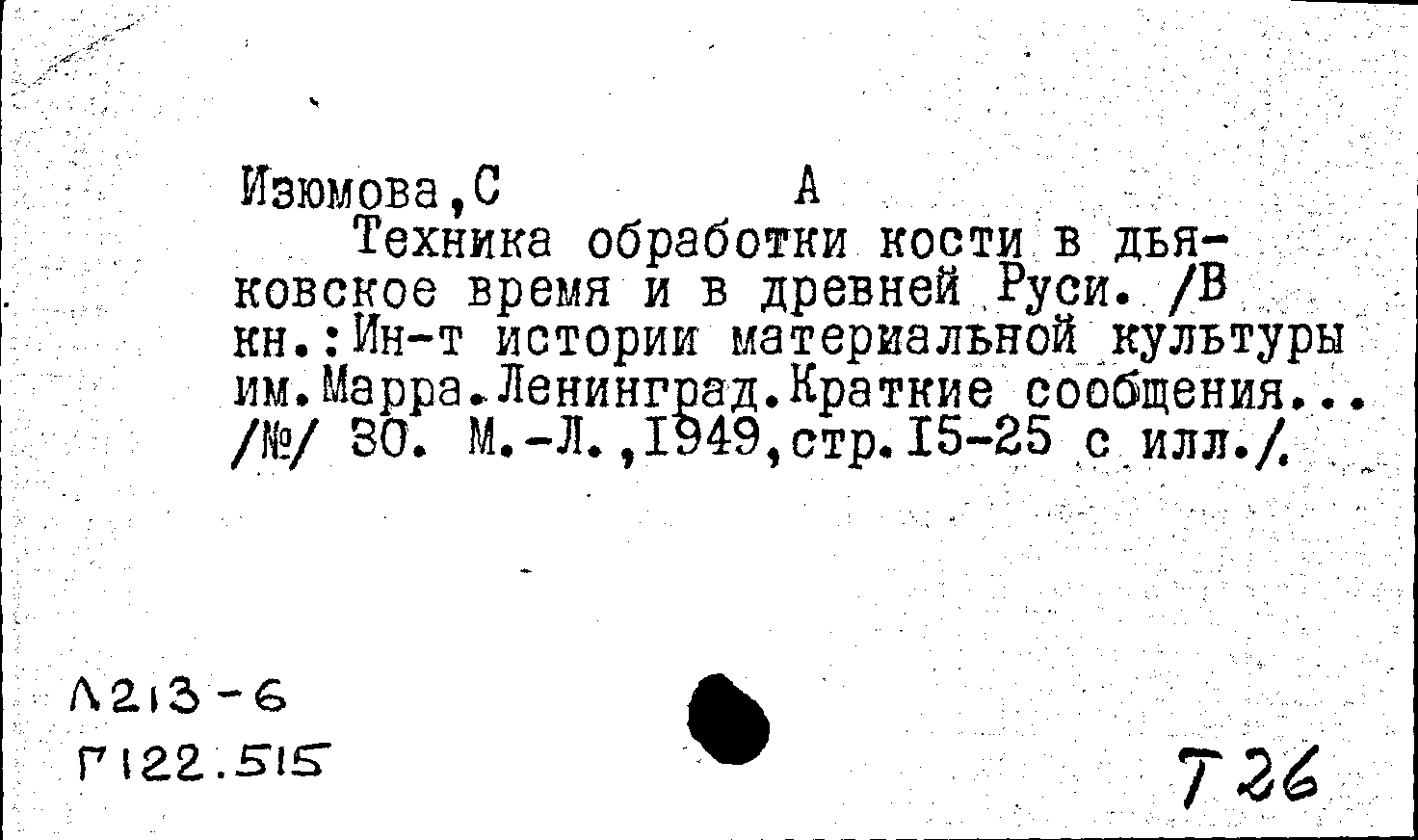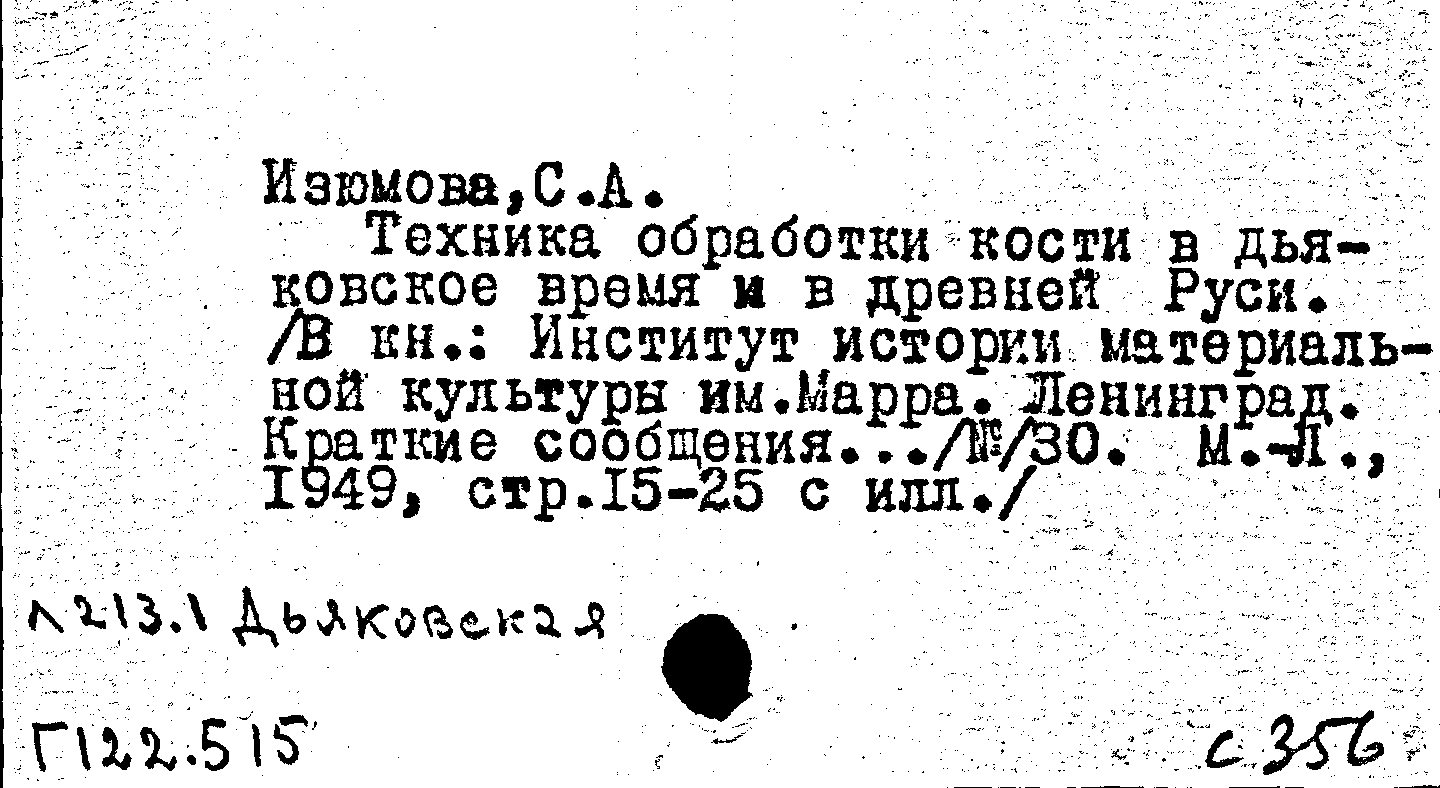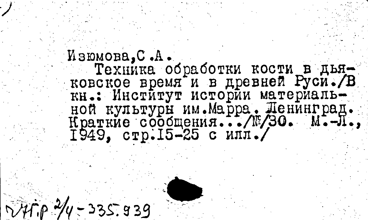 Книга (аналит. описание): Техника обработки кости в дьяковское время и в Древней Руси
