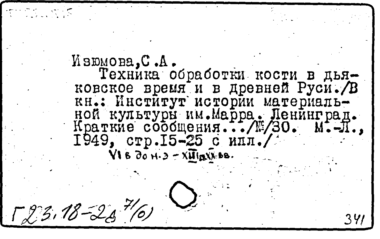 Краткие сообщения о докладах и полевых исследованиях Института истории материальной культуры. Вып. 30