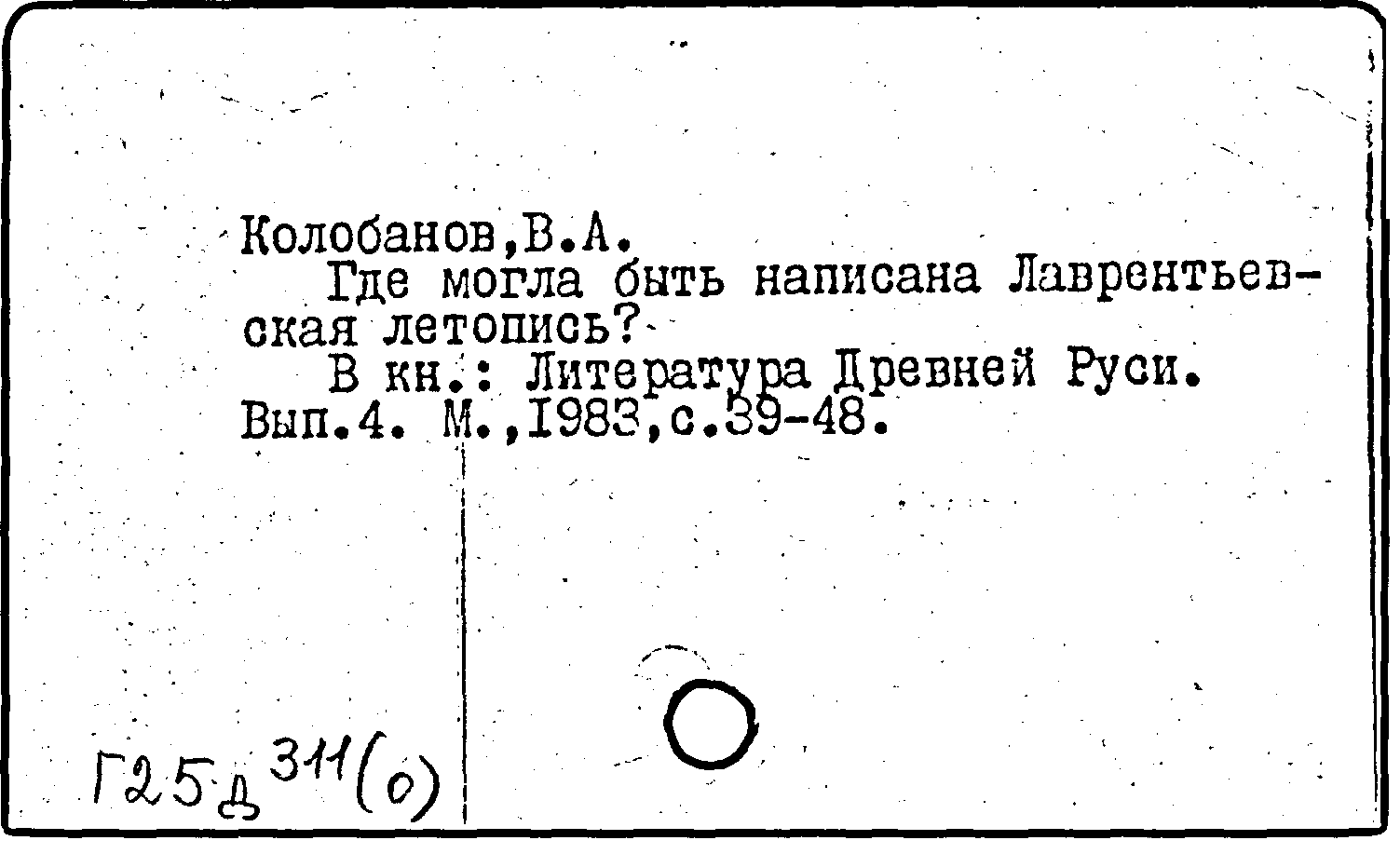 Книга (аналит. описание): Где могла быть написана Лаврентьевская летопись?