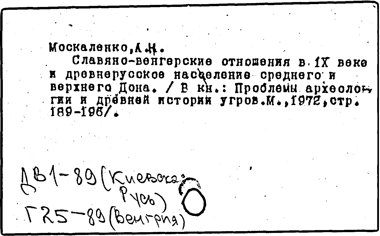 Книга (аналит. описание): Славяно-венгерские отношения в IX веке и древнерусское население среднего и верхнего Дона