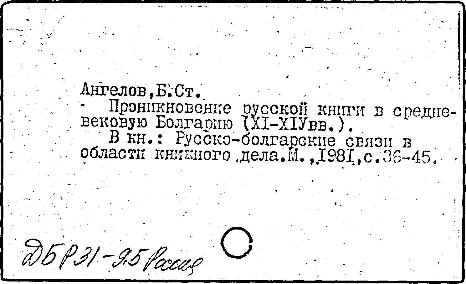 Книга (аналит. описание): Проникновение русской книги в средневековую Болгарию (XI-XIV вв.)