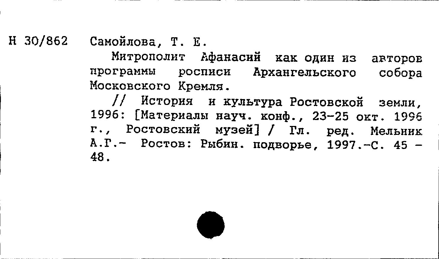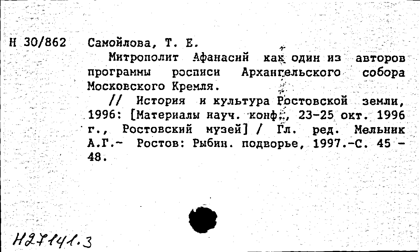 История и культура Ростовской земли. 1996: [Материалы научной конференции, 23-25 октября 1996 г., Ростовский музей]