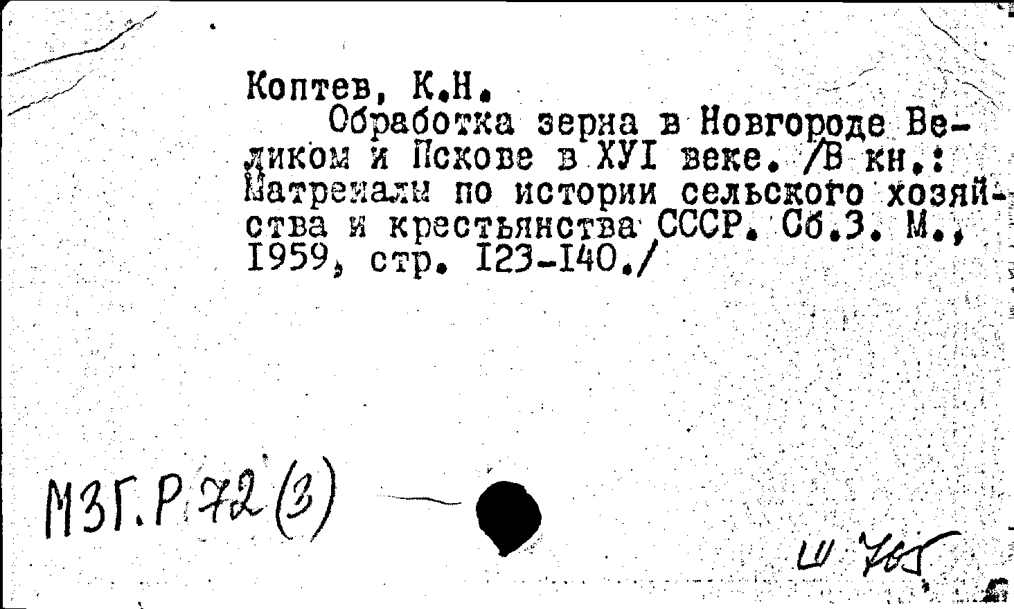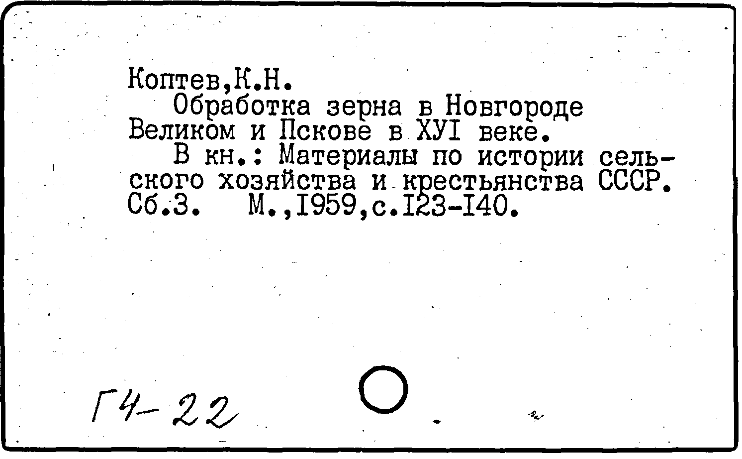 Обработка зерна в Новгороде Великом и Пскове в XVI веке
