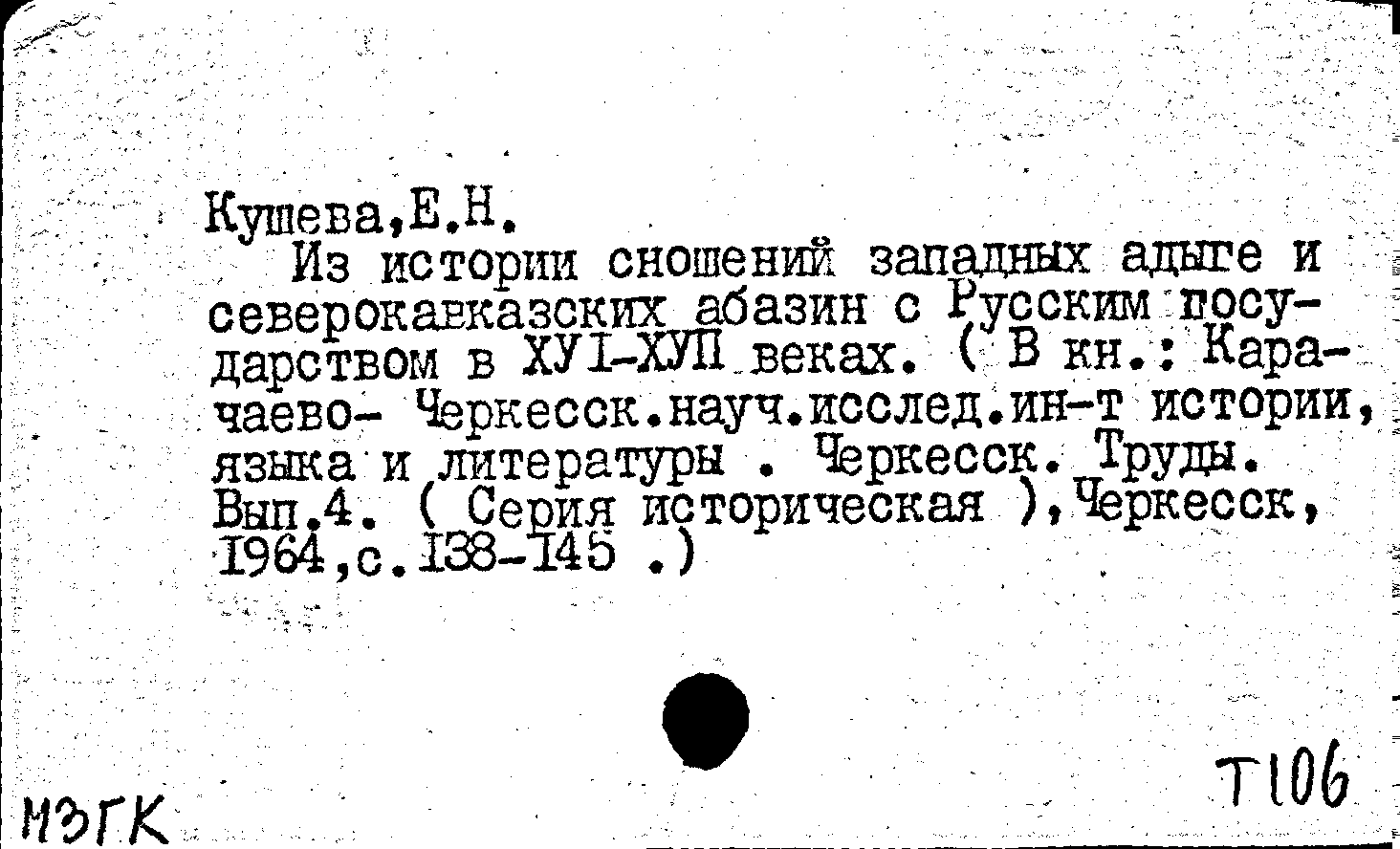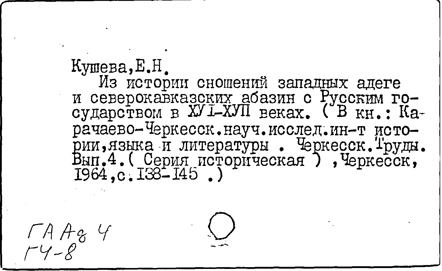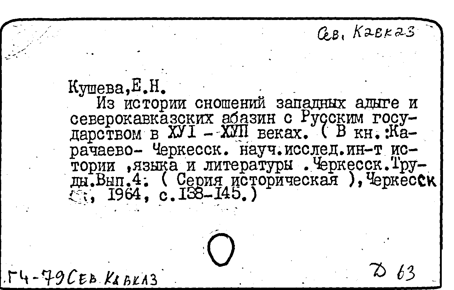 Из истории сношений западных адыге и северокавказских абазин с Русским государством в XVI- XVII веках