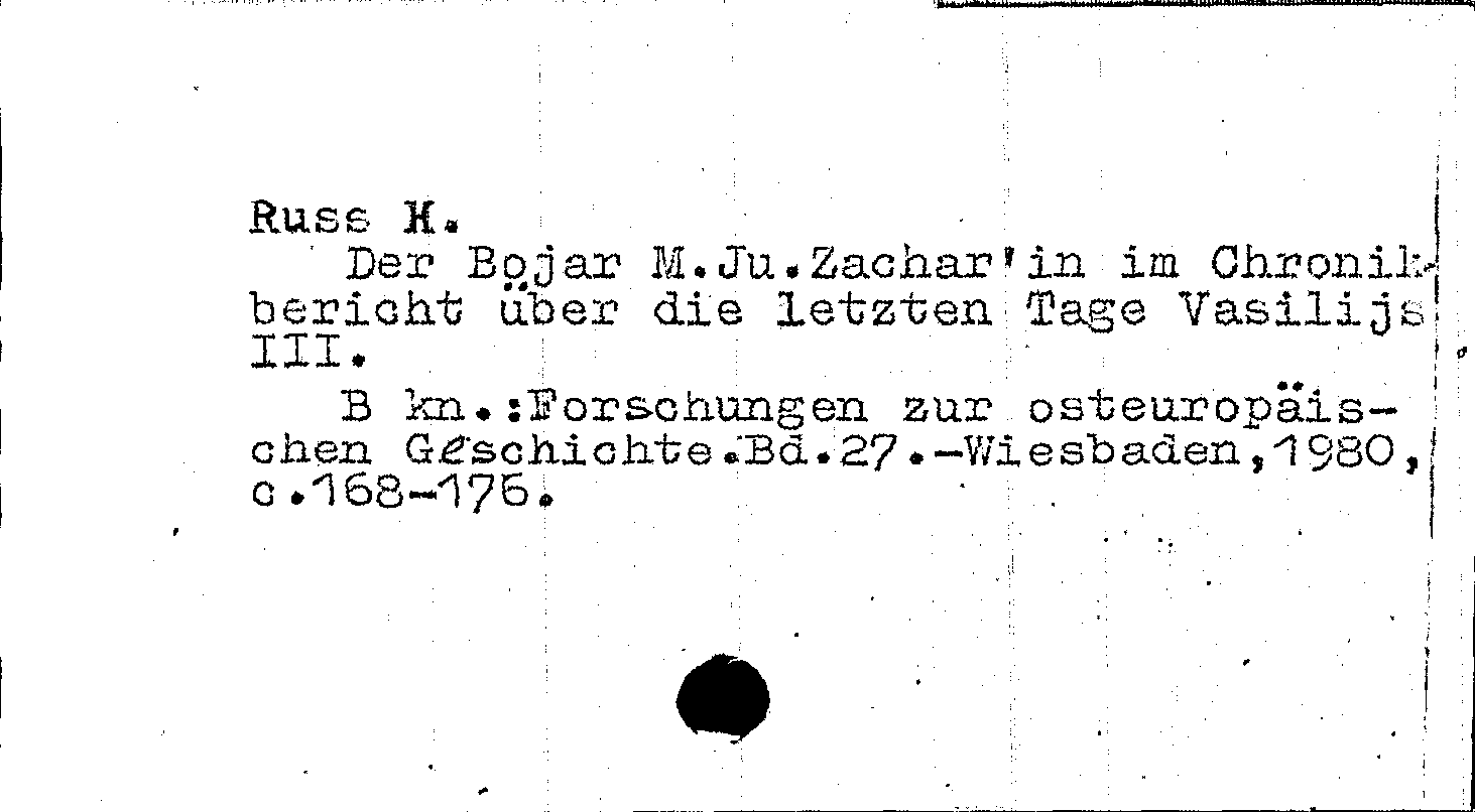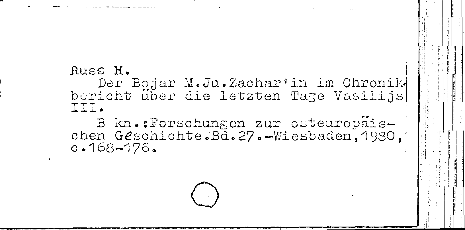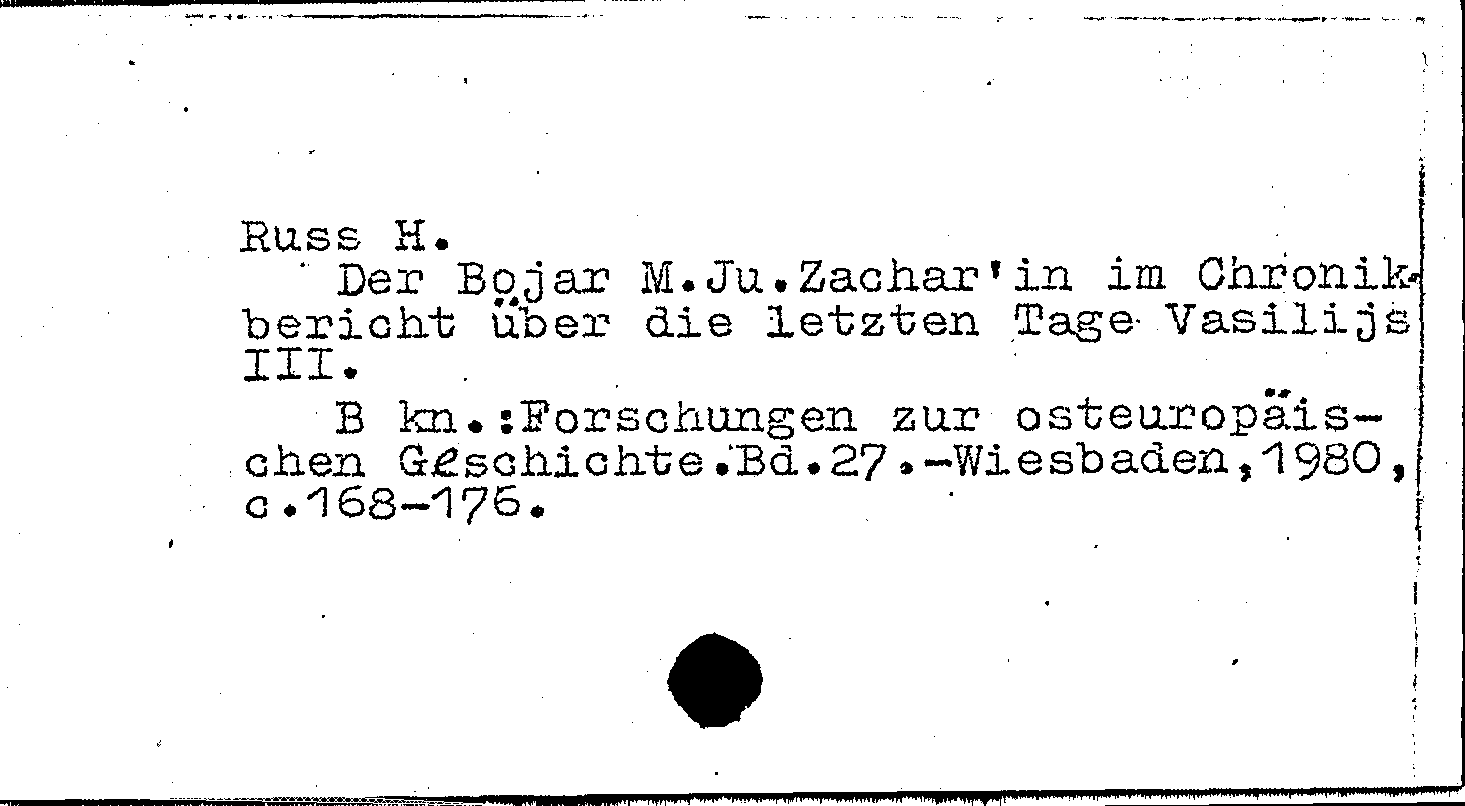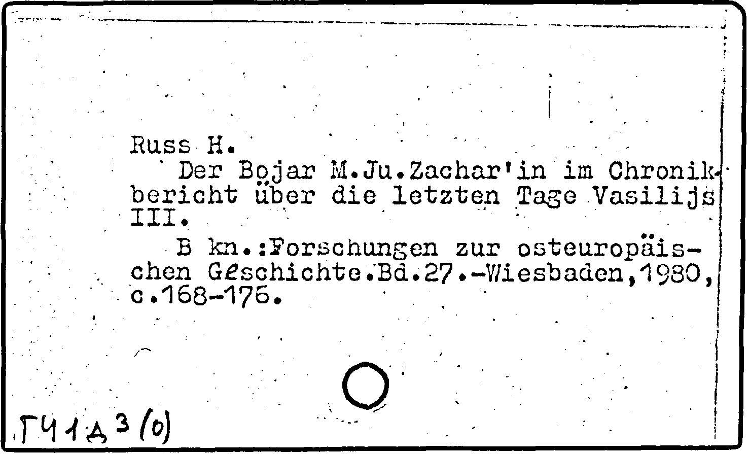 Книга (аналит. описание): Der Bojar M. Ju. Zachar' in im Chronikbericht uber die letzten Tage Vasilijs III
