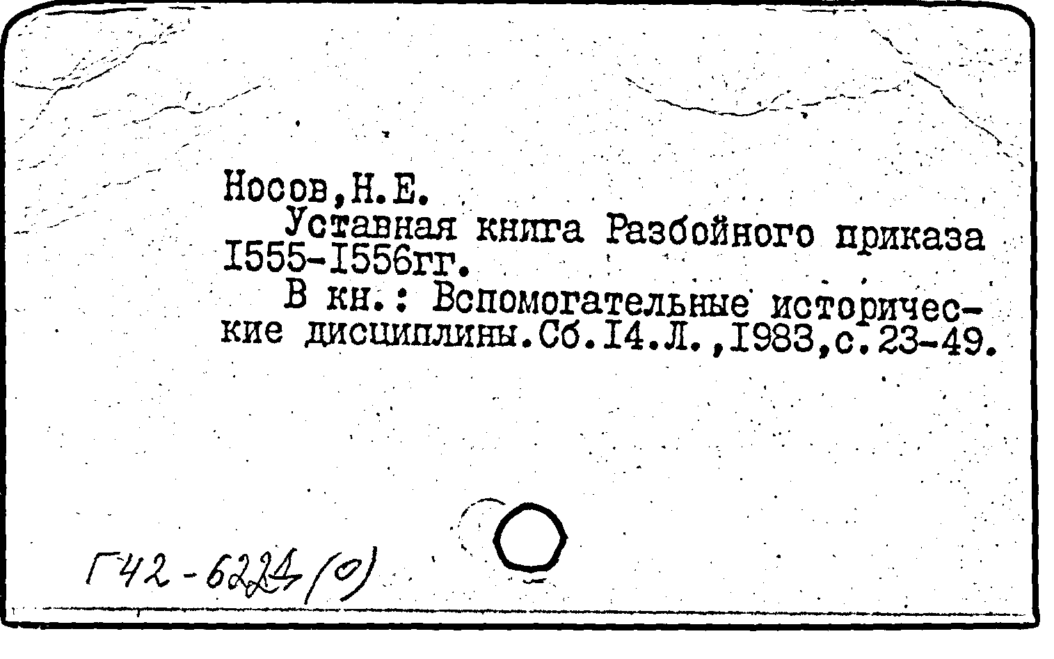 Книга (аналит. описание): Уставная книга Разбойного приказа 1555-1556 гг.