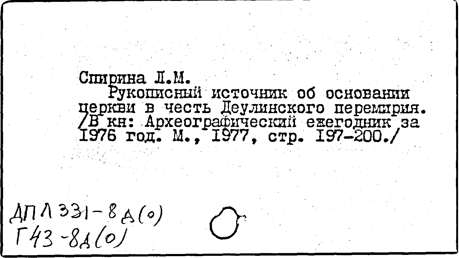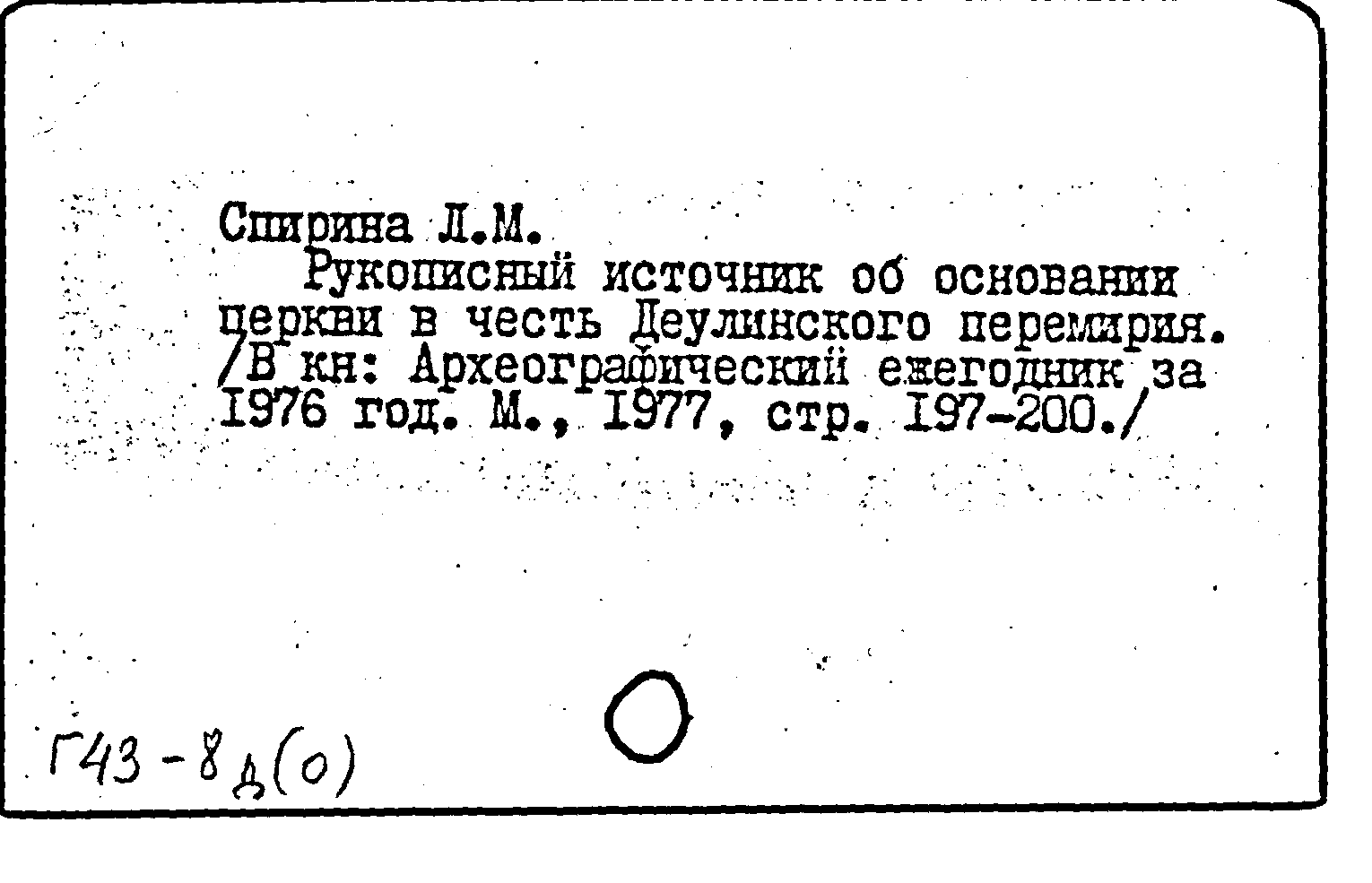 Книга (аналит. описание): Рукописный источник об основании церкви Деулинского перемирия