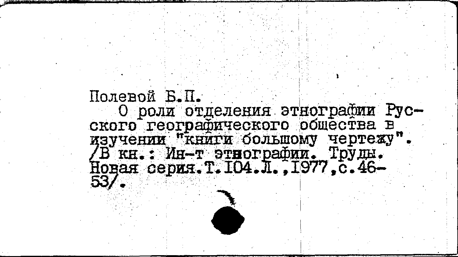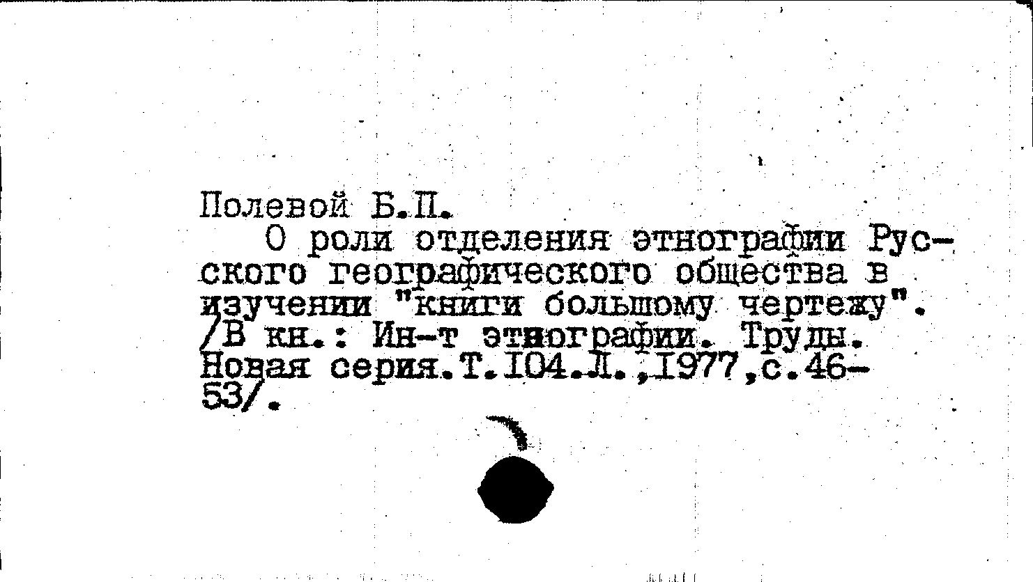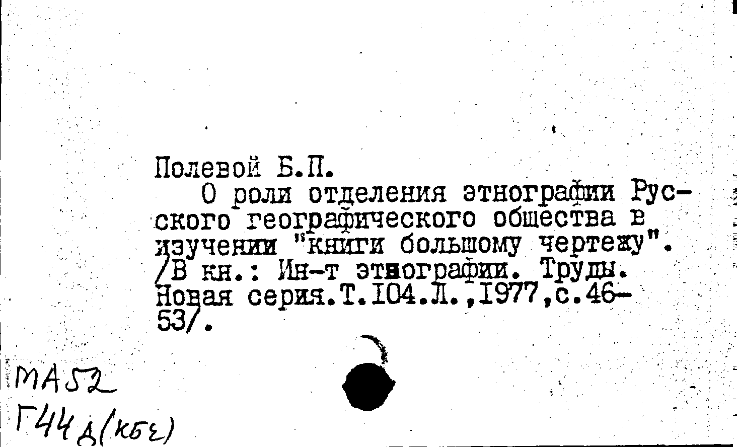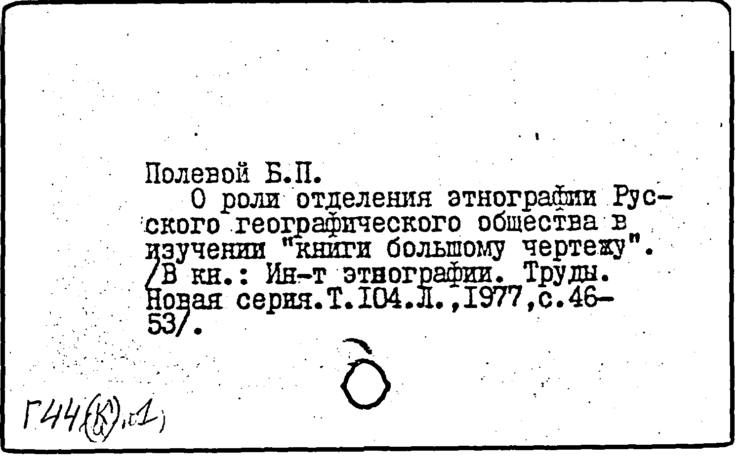 Книга (аналит. описание): О роли отделения этнографии Русского географического общества в изучении "книги большому чертежу"