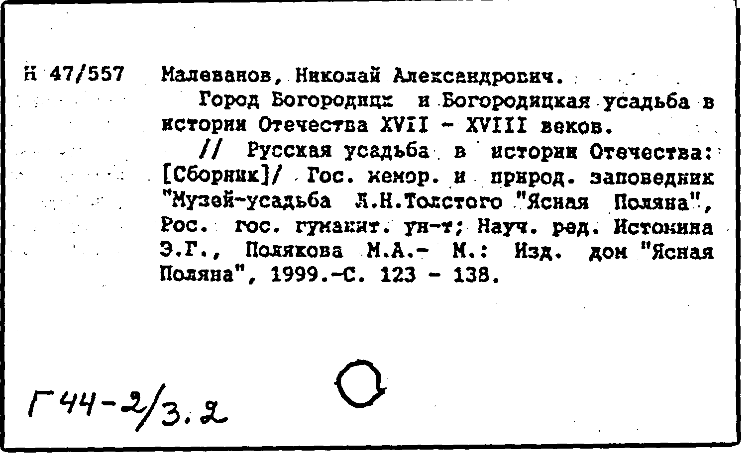 Книга (аналит. описание): Город Богородицк и Богородицкая усадьба в истории Отечества XVII-XVIII веков