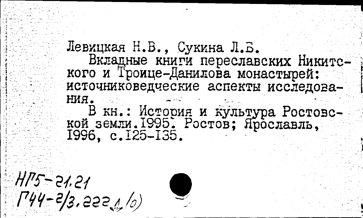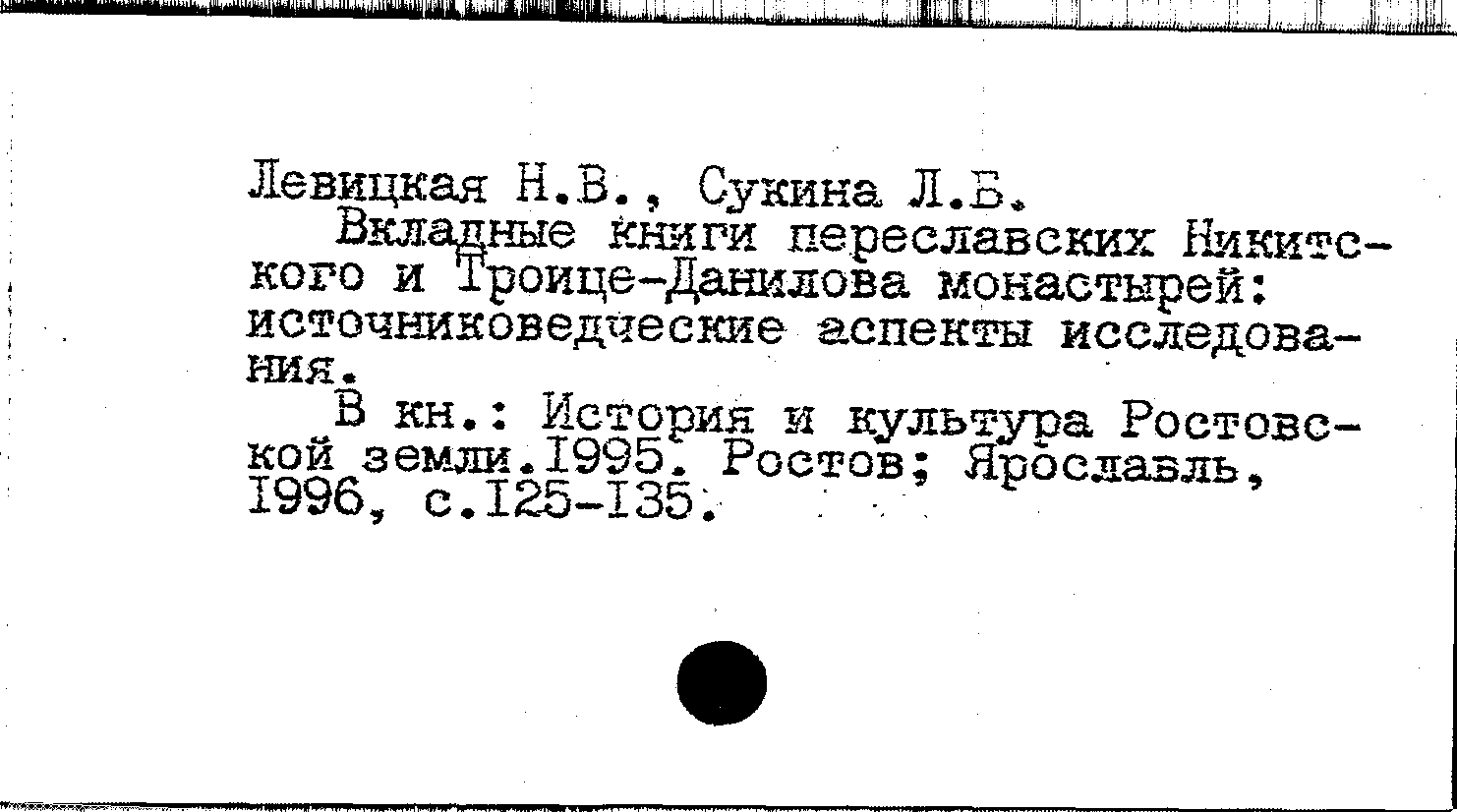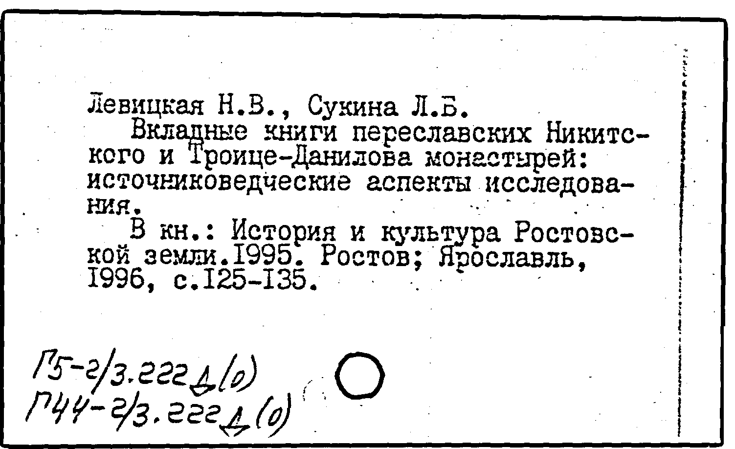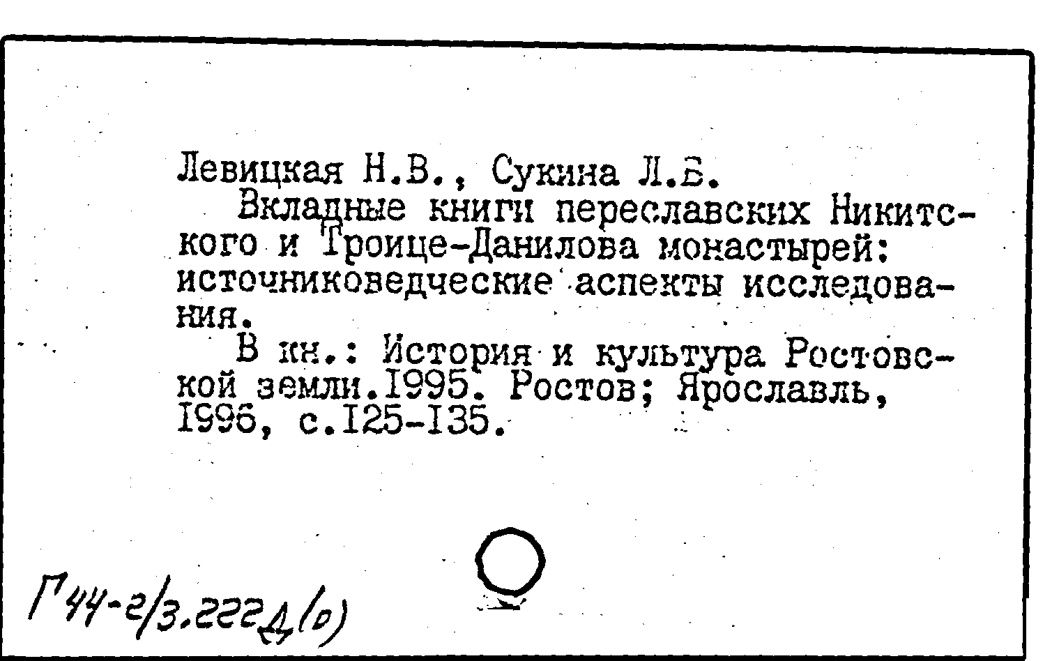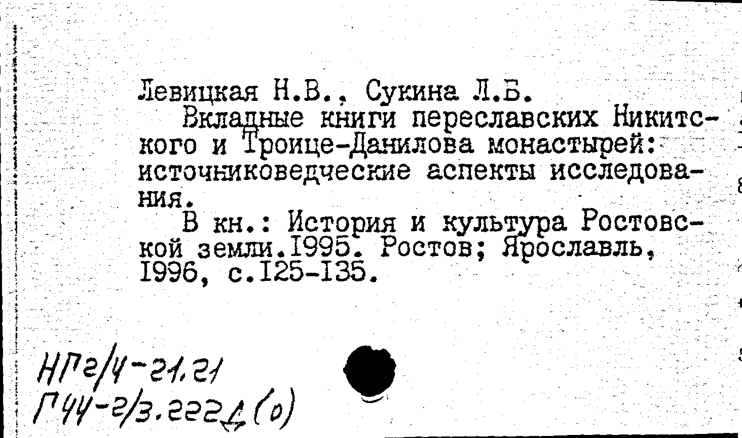 Книга (аналит. описание): Вкладные книги переславских Никитского и Троице-Данилова монастырей: источниковедческие аспекты исследования