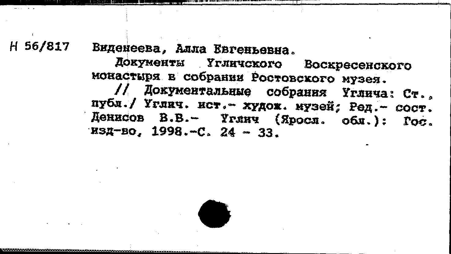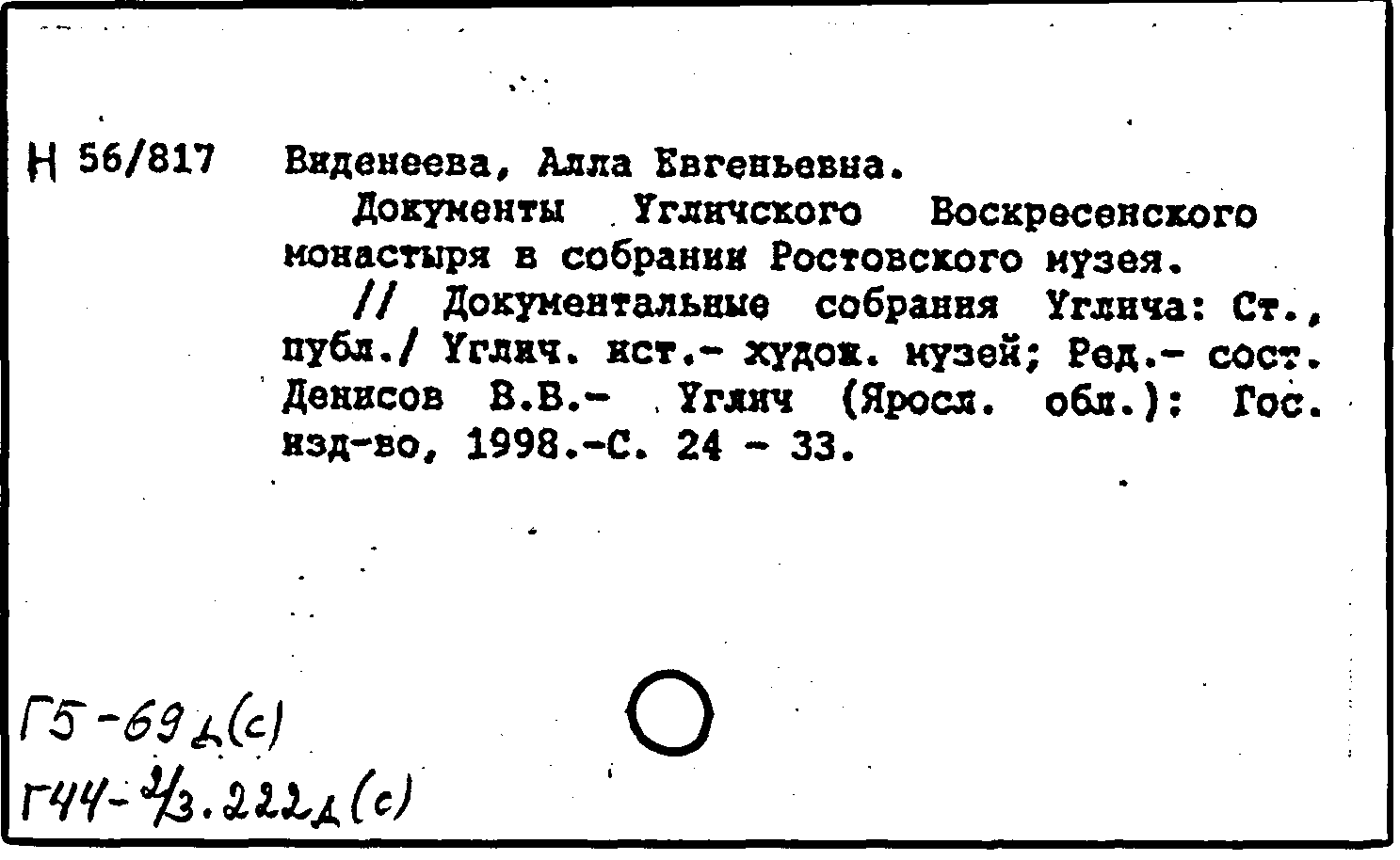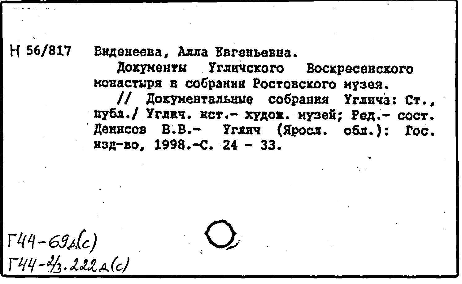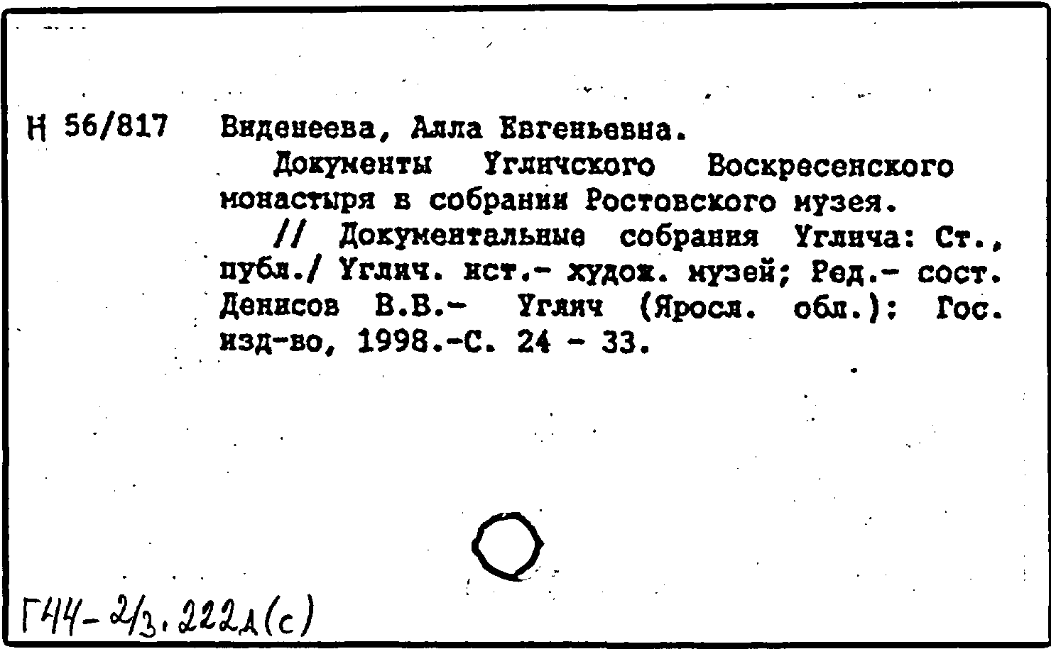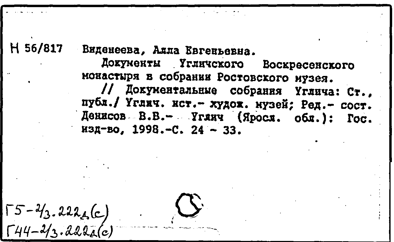 Книга (аналит. описание): Документы Угличского Воскресенского монастыря в собрании Ростовского музея
