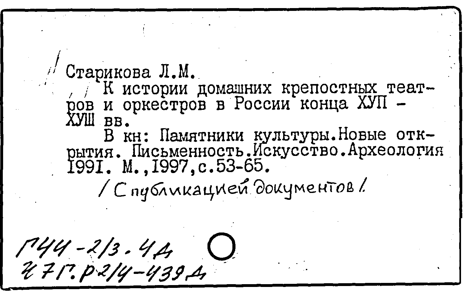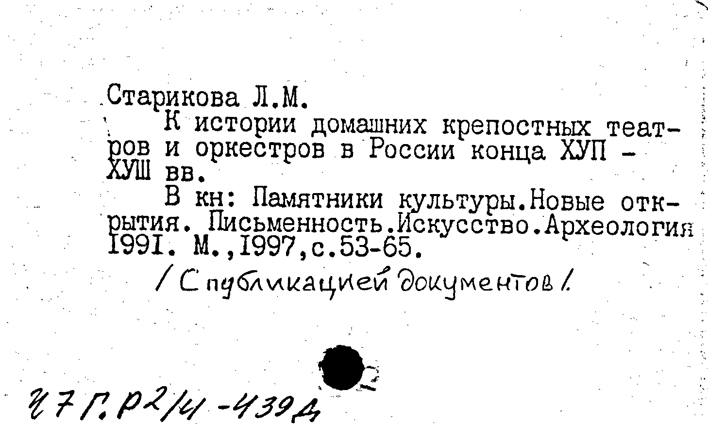 Книга (аналит. описание): К истории домашних крепостных театров и оркестров в России конца XVII-XVIII вв.