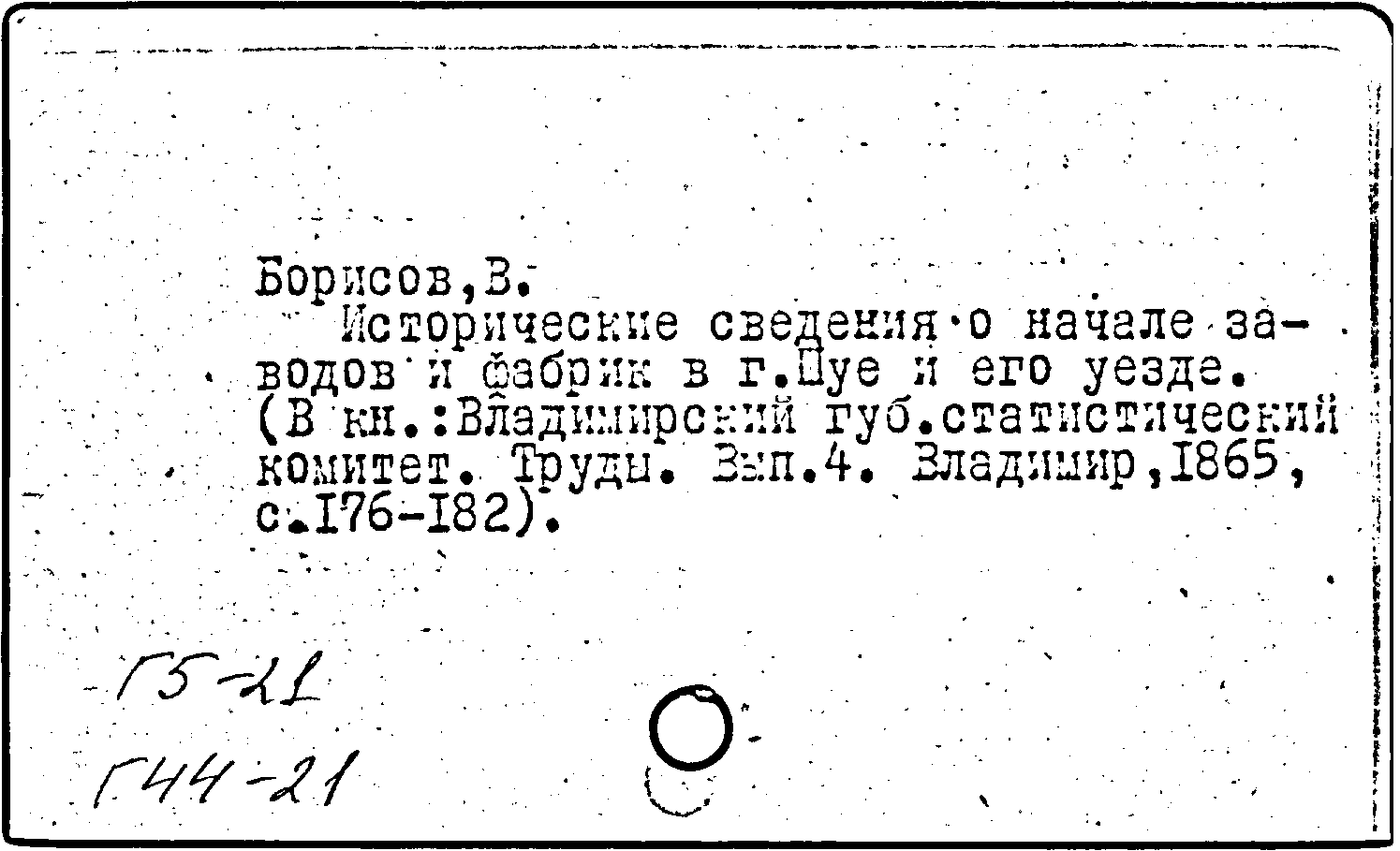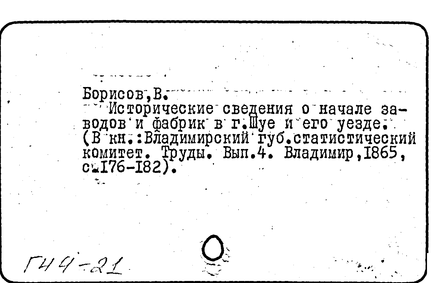 Исторические сведения о начале заводов и фабрик в г. Шуе и его уезде