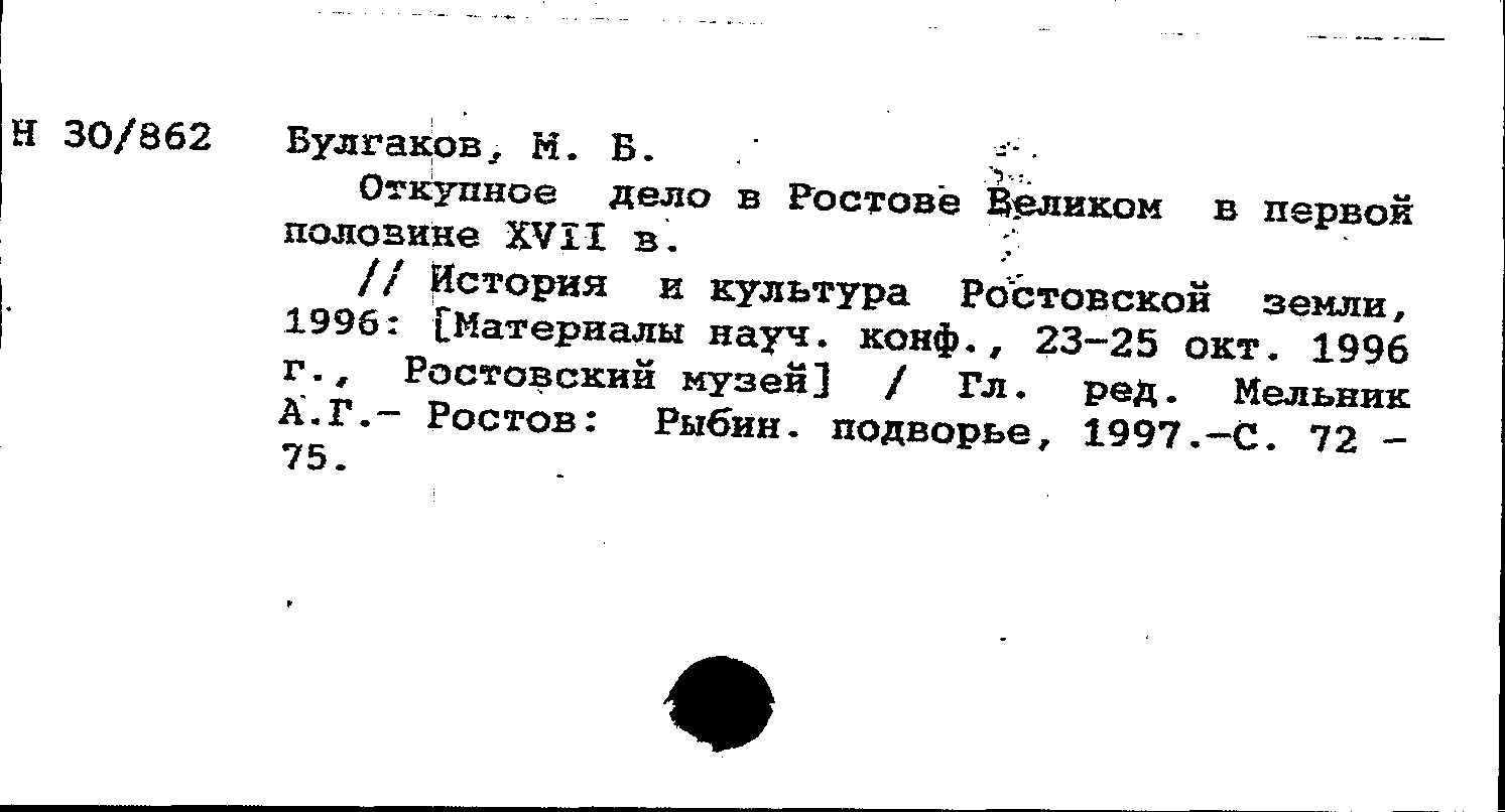 История и культура Ростовской земли. 1996: [Материалы научной конференции, 23-25 октября 1996 г., Ростовский музей]