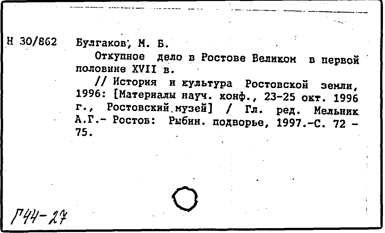 Книга (аналит. описание): Откупное дело в Ростове Великом в первой половине XVII века