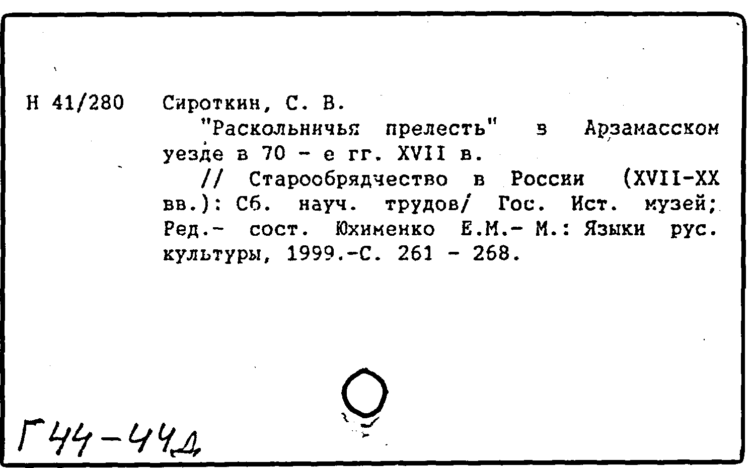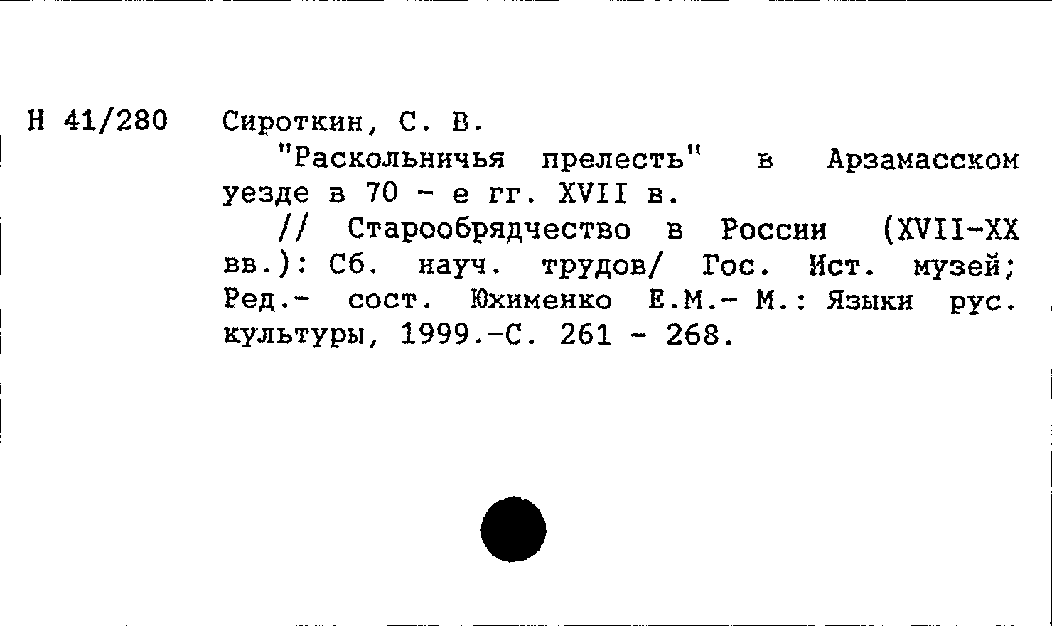 Книга (аналит. описание): "Раскольничья прелесть" в Арзамасском уезде в 70-е гг. XVII в.