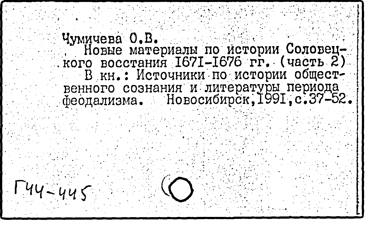 Новые материалы по истории Соловецкого восстания 1671-1676 гг. (Ч. 2)