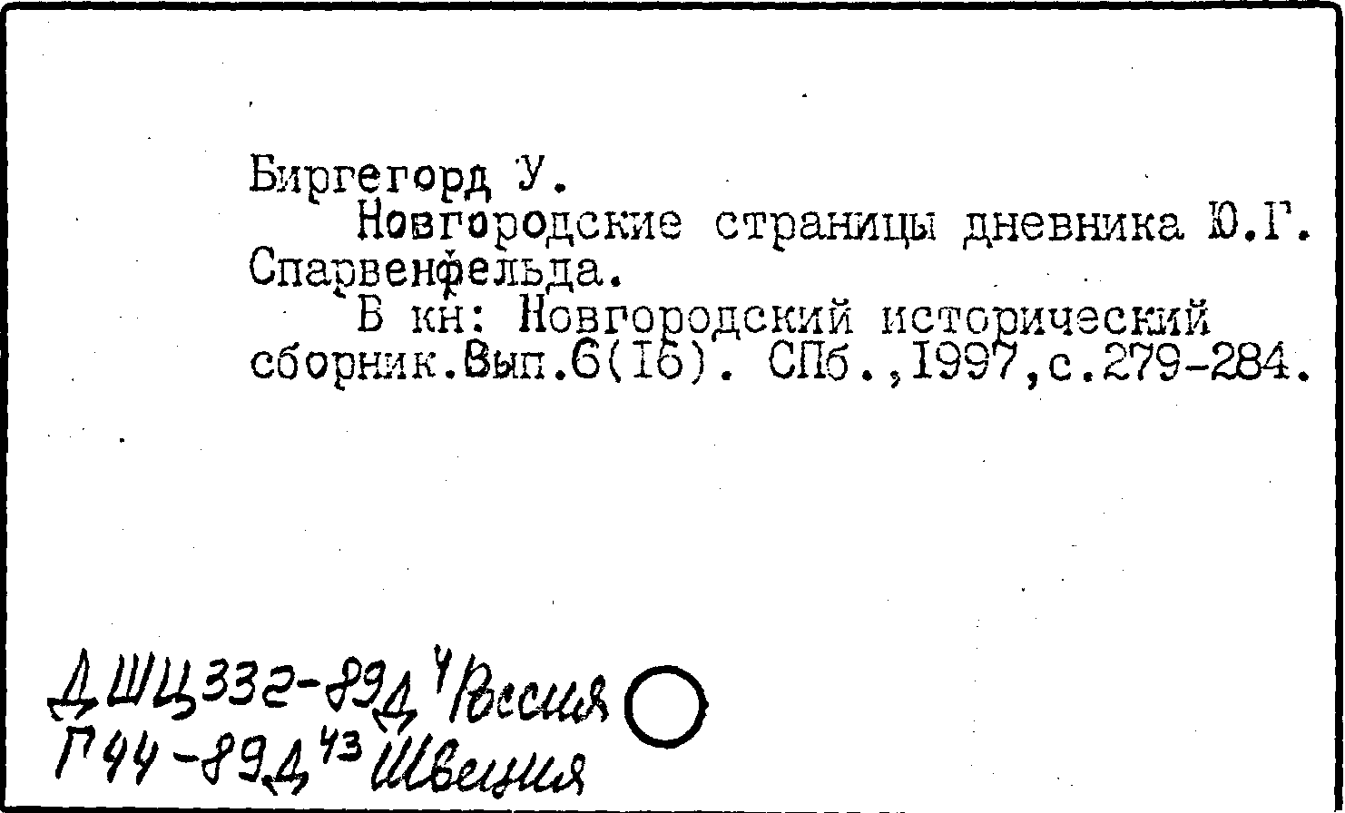 Новгородские страницы дневника Ю. Г. Спарвенфельда