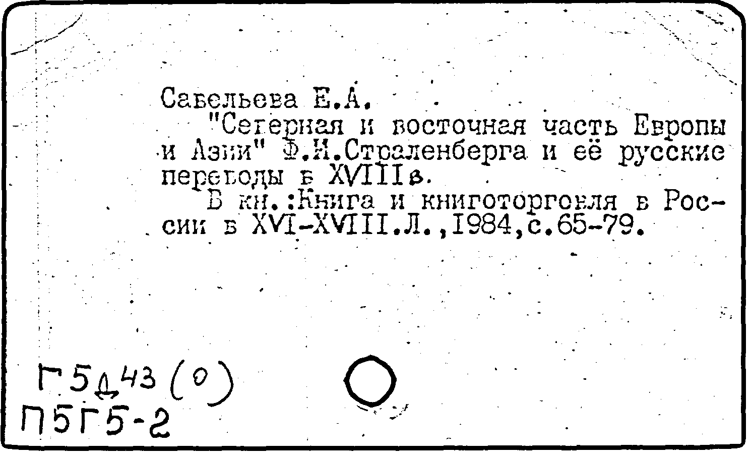 Книга (аналит. описание): "Северная и восточная часть Европы и Азии" Ф. И. Страленберга и ее русские переводы в XVIII в.