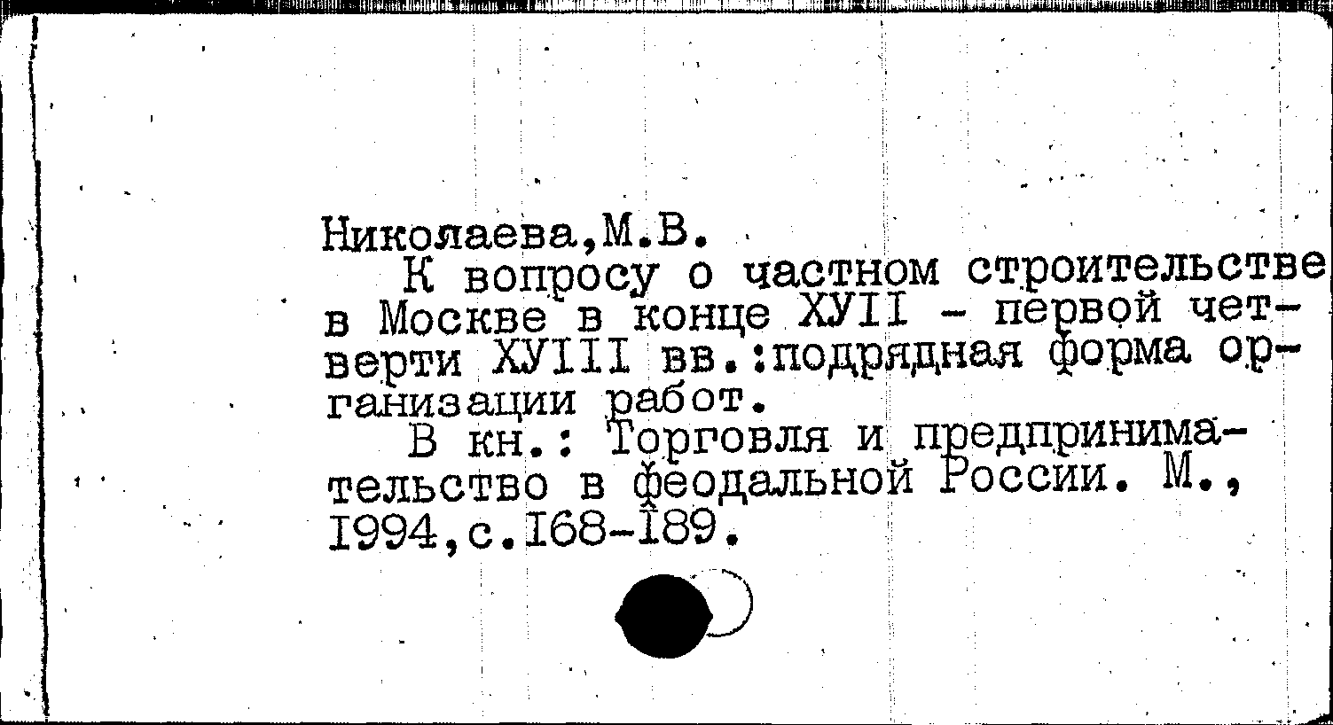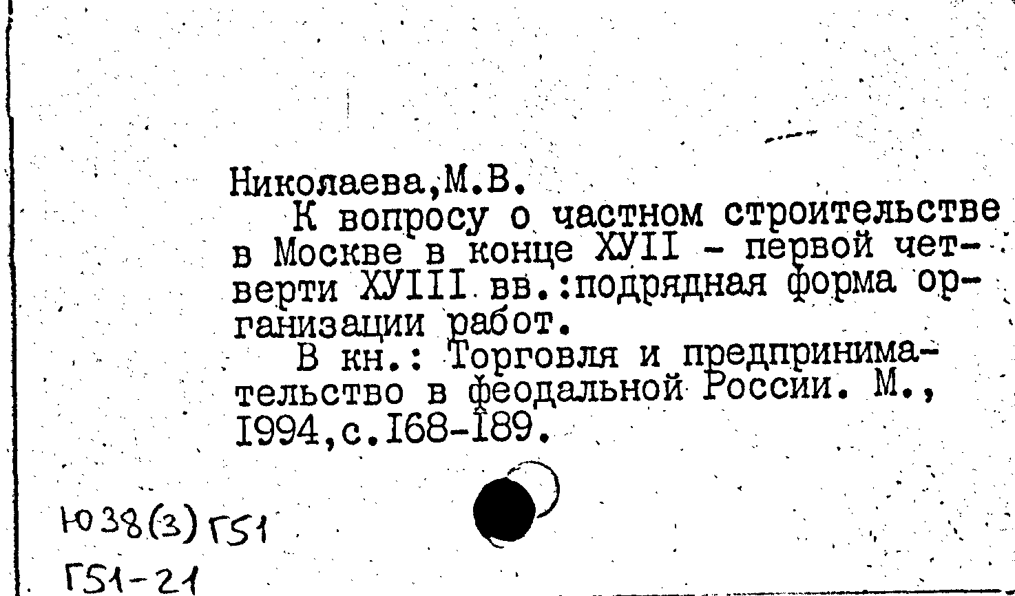 Книга (аналит. описание): К вопросу о частном строительстве в Москве в конце XVII - первой четверти XVIII вв.: подрядная форма организации работ