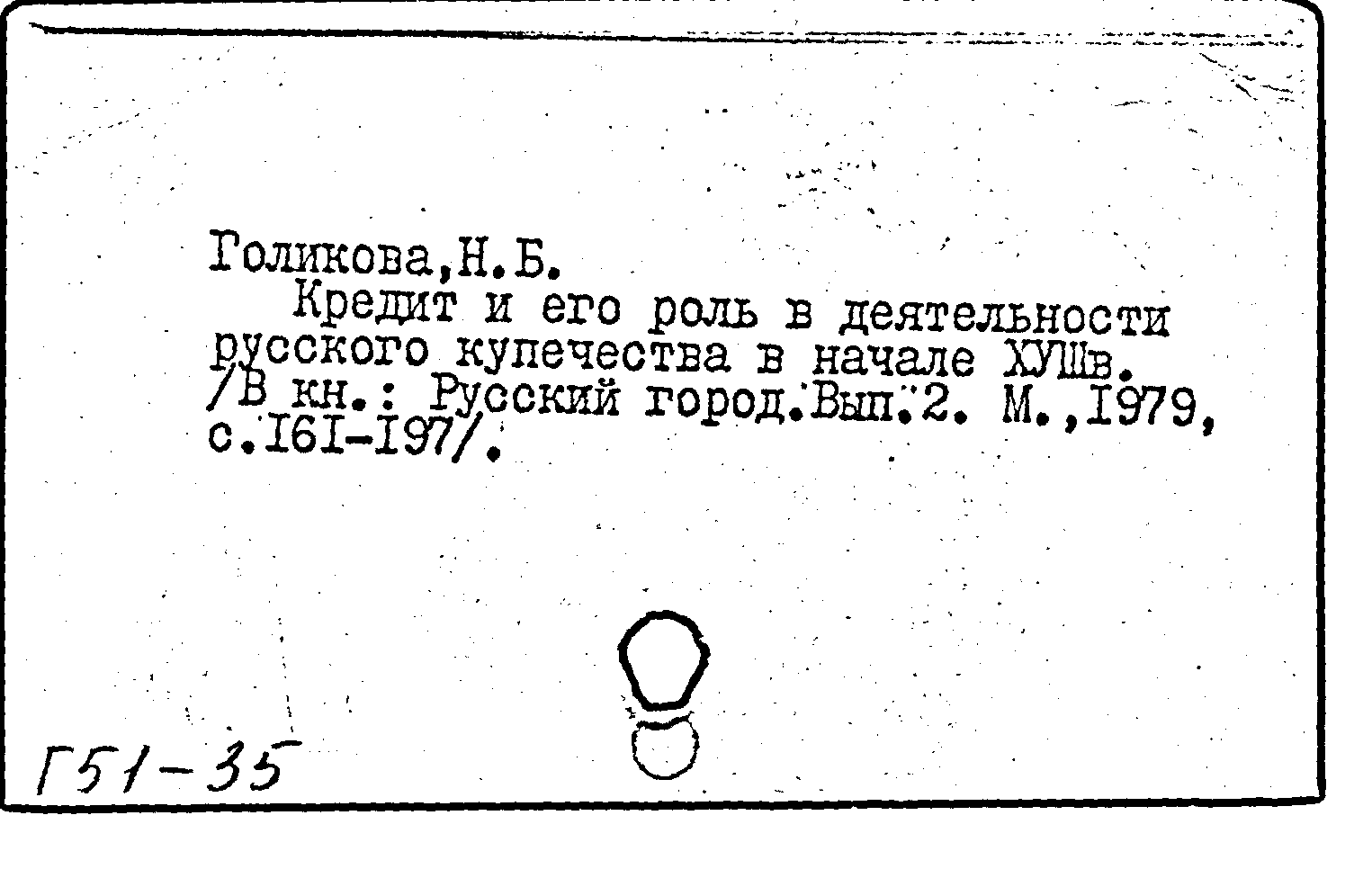 Книга (аналит. описание): Кредит и его роль в деятельности русского купечества в начале XVIII в.