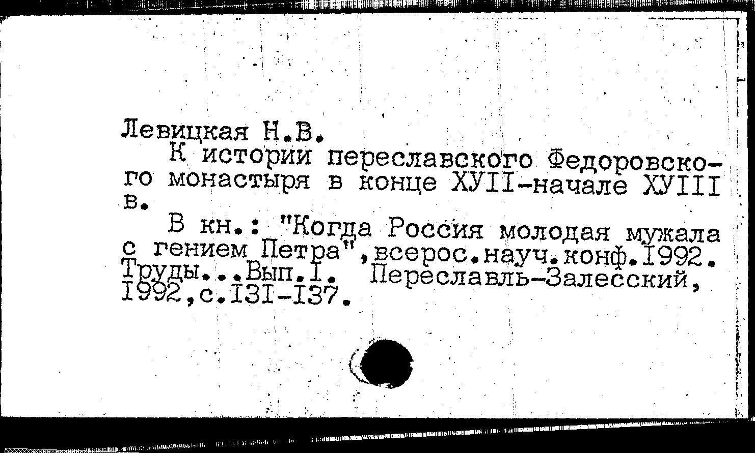 К истории переславского Федоровского монастыря в конце XVII - начале XVIII века