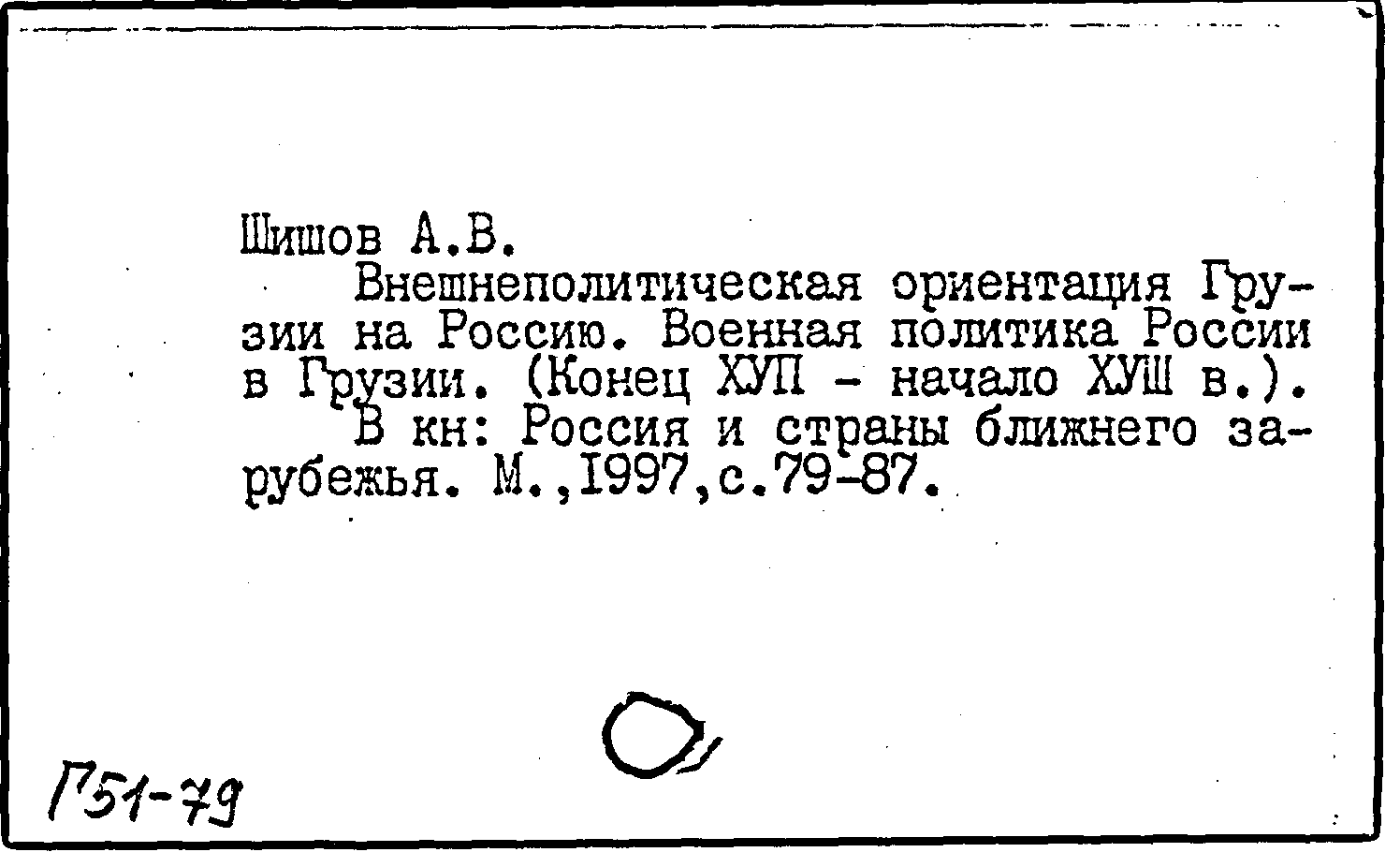 Книга (аналит. описание): Внешнеполитическая ориентация Грузии на Россию. Военная политика России в Грузии