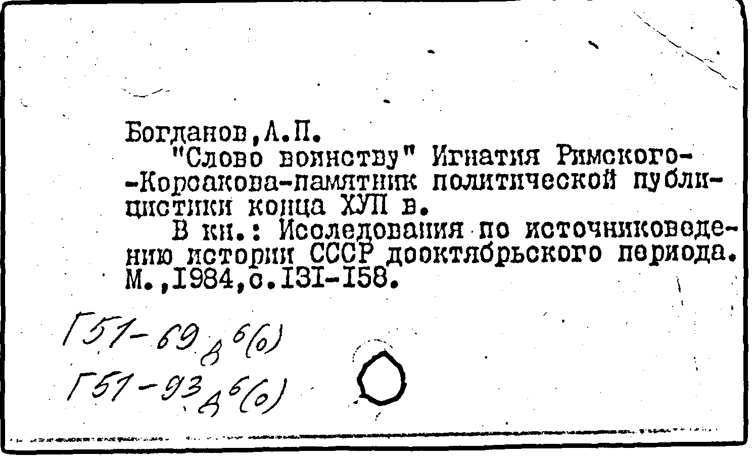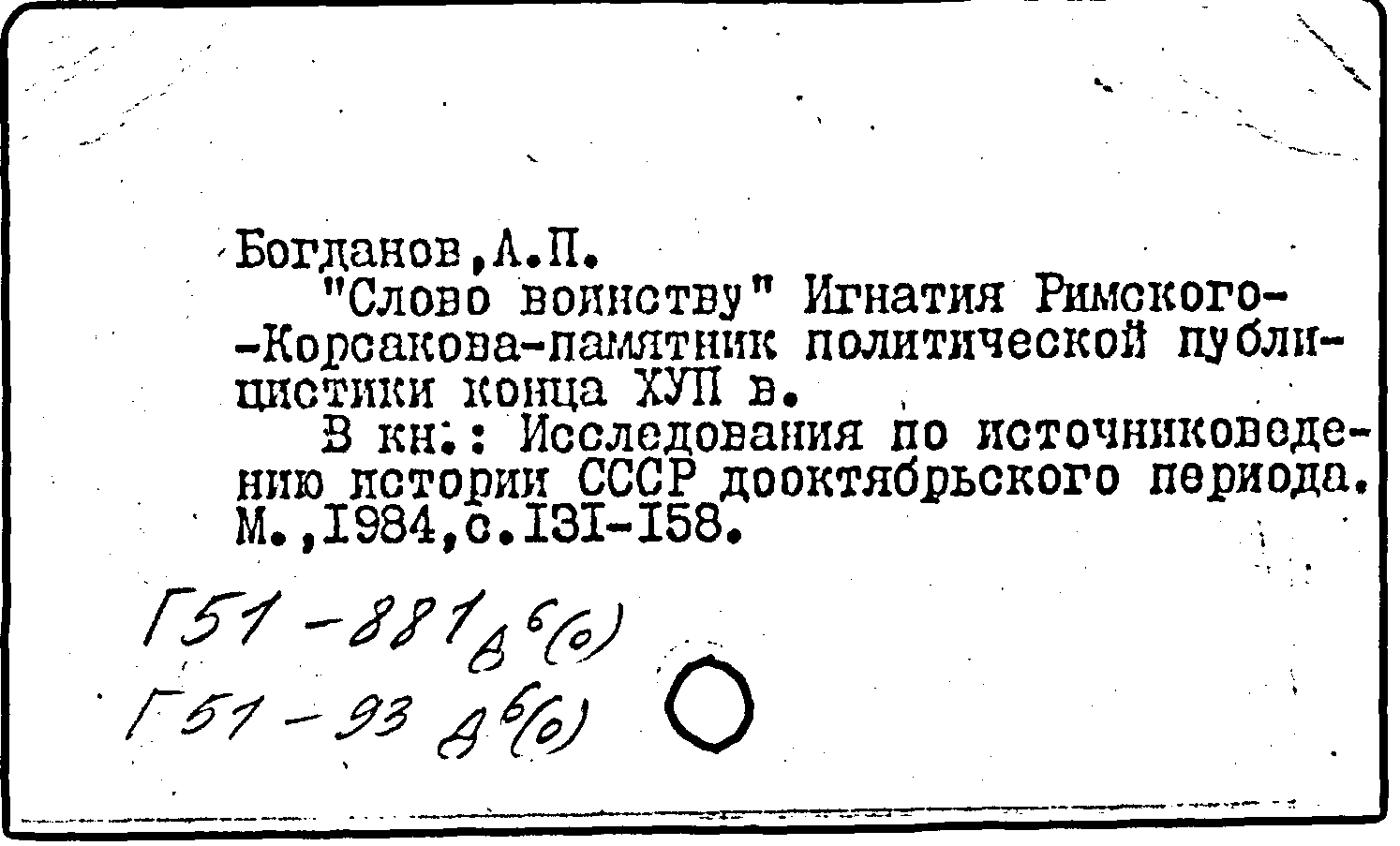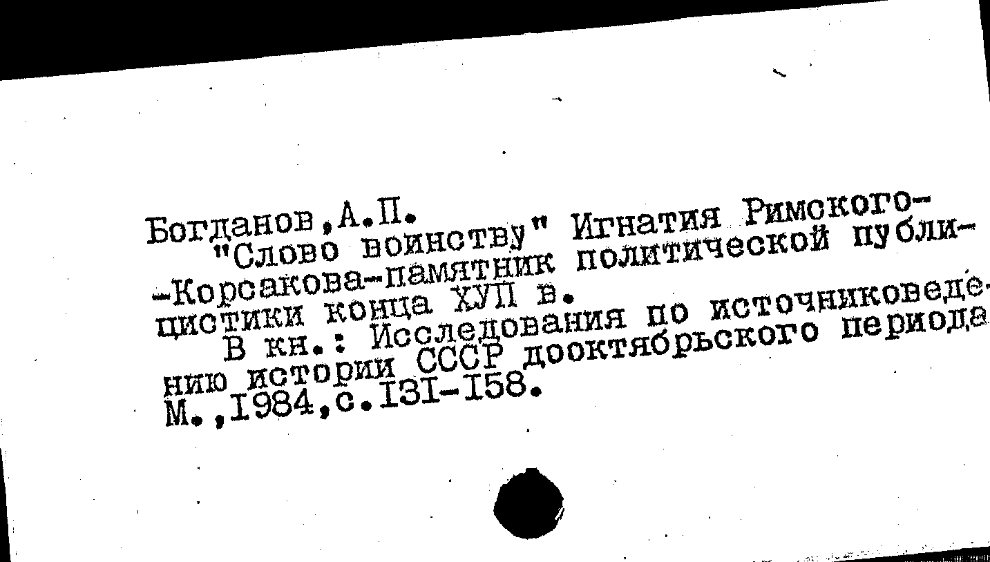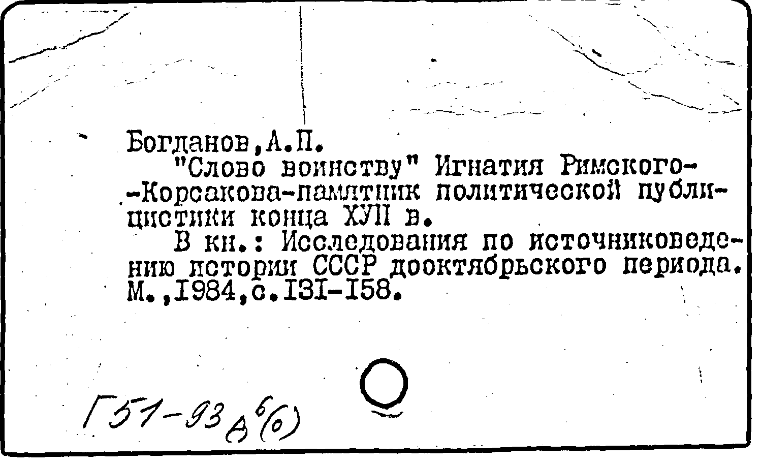 Книга (аналит. описание): "Слово воинству" Игнатия Римского-Корсакова - памятник политической публицистики конца XVII в.