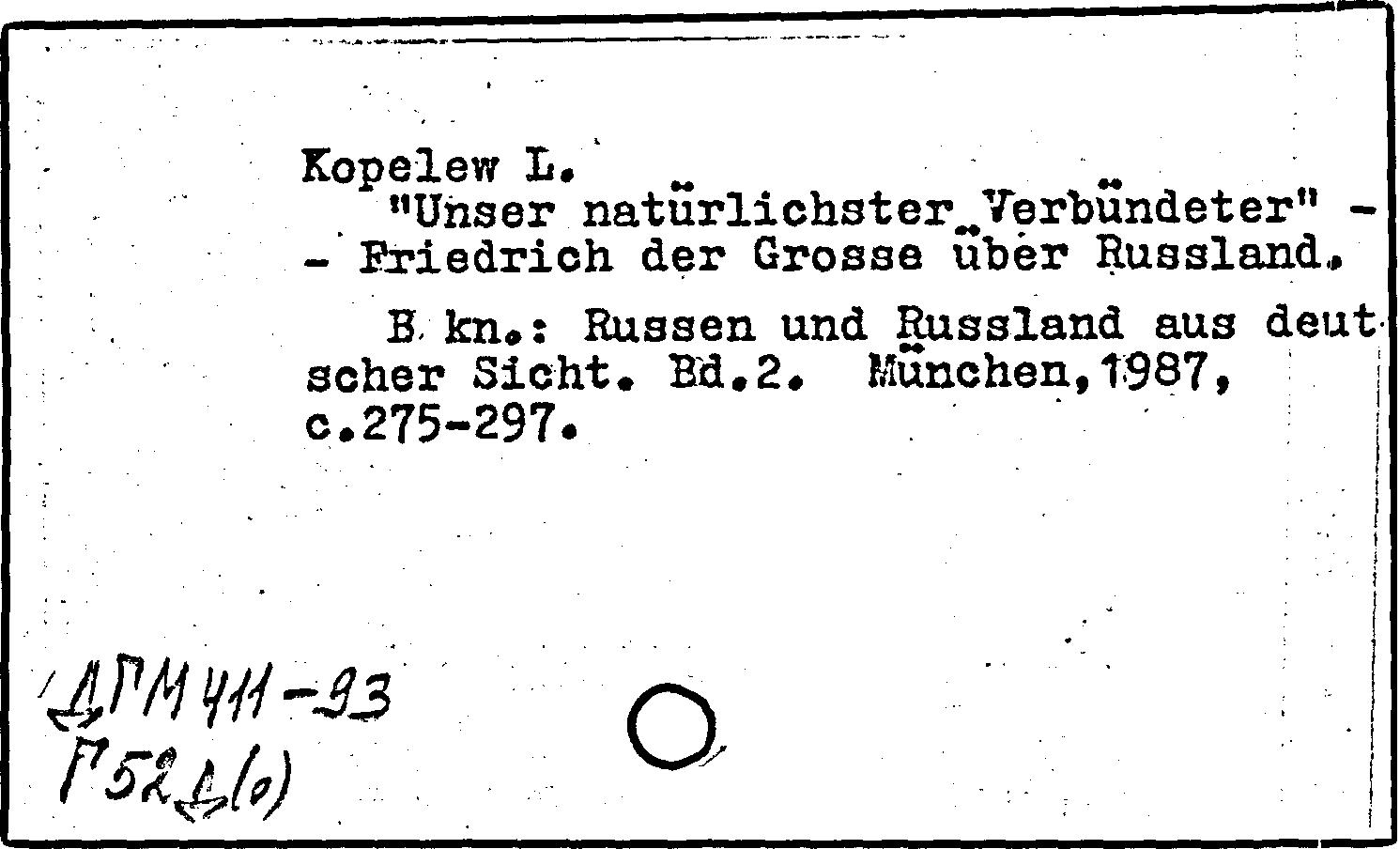 Книга (аналит. описание): "Unser naturlichster Verbundeter" - Friedrich der Grosse uber Russland