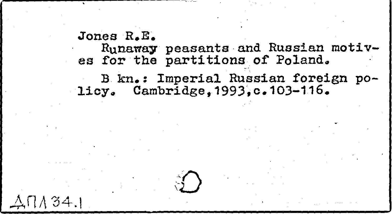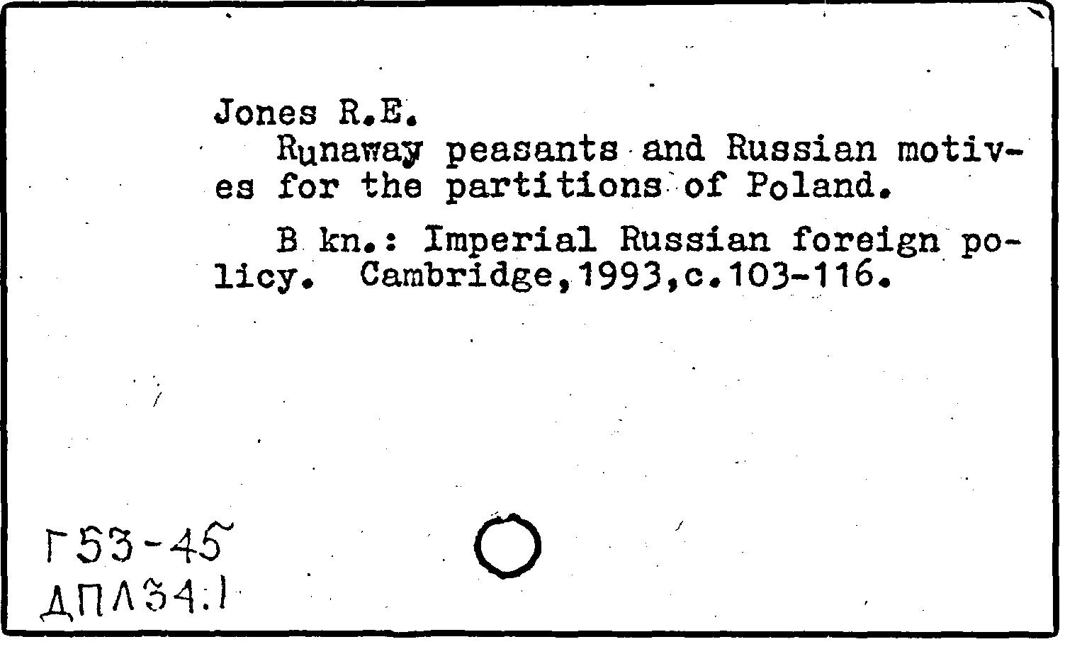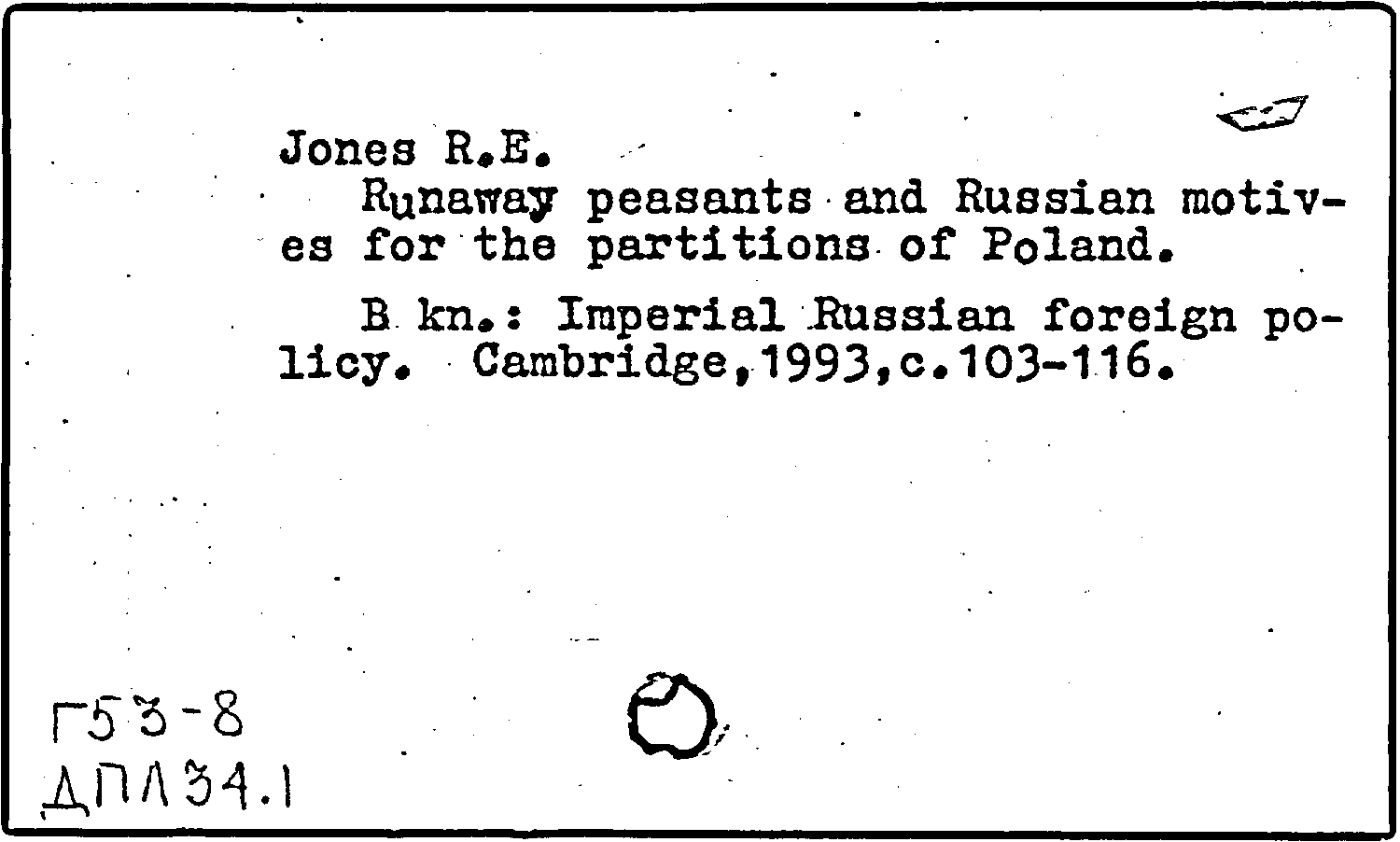 Книга (аналит. описание): Runaway peasants and Russian motives for the partitions of Poland