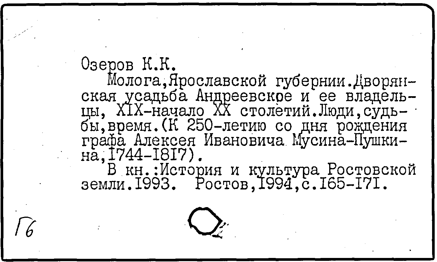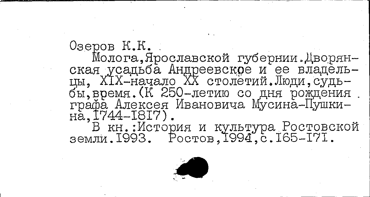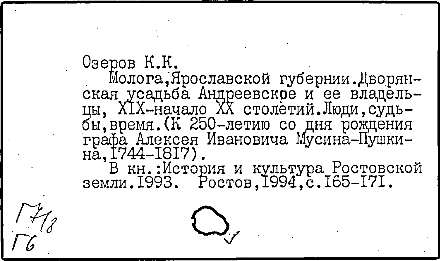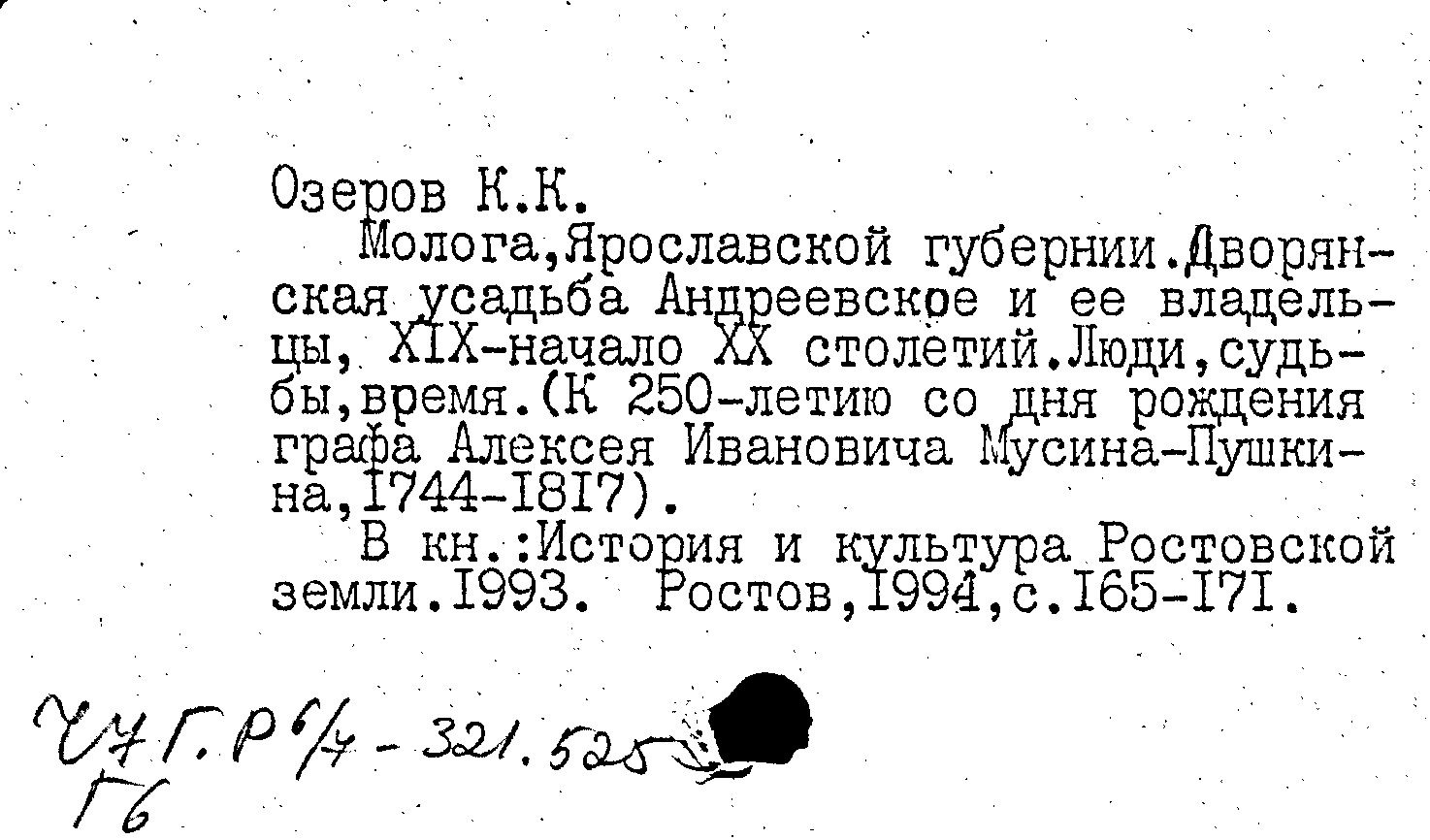 Книга (аналит. описание): Молога, Ярославской губернии. Дворянская усадьба Андреевское и ее владельцы, XIX - начало XX столетий