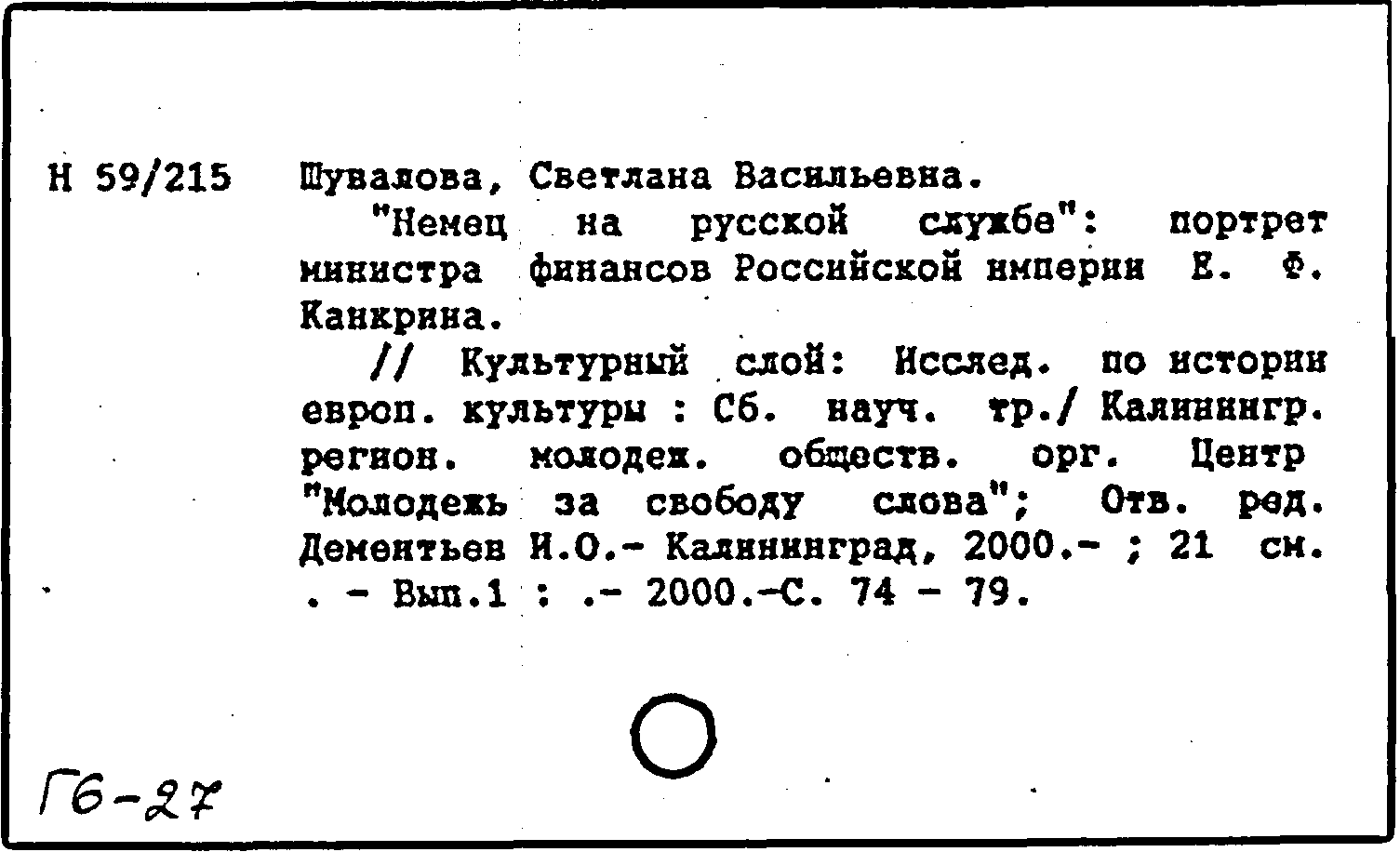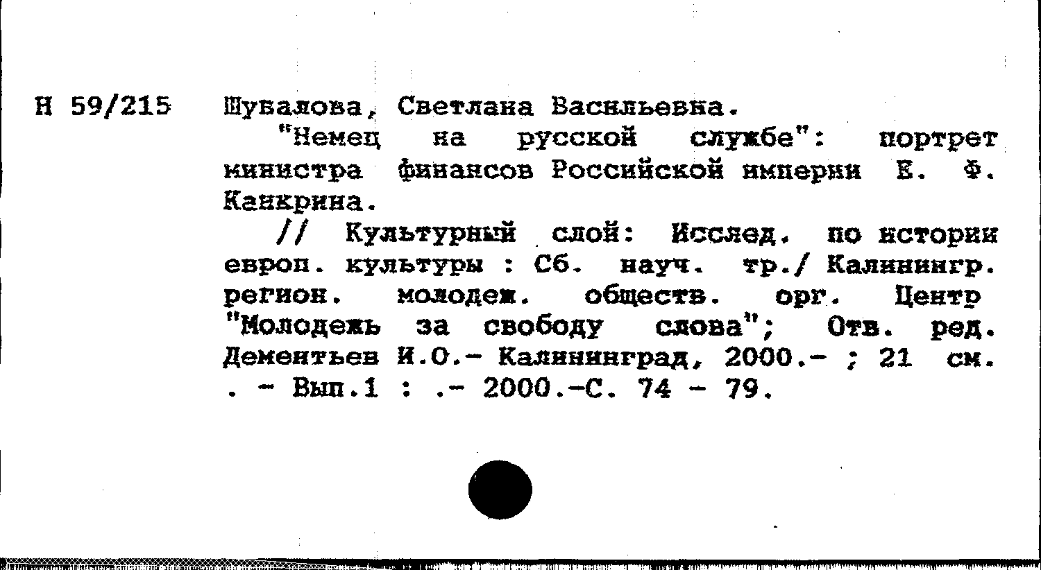Книга (аналит. описание): "Немец на русской службе": портрет министра финансов Российской империи Е. Ф. Канкрина