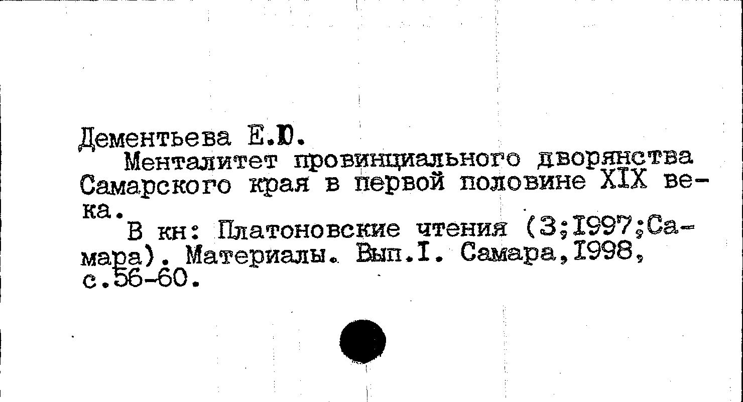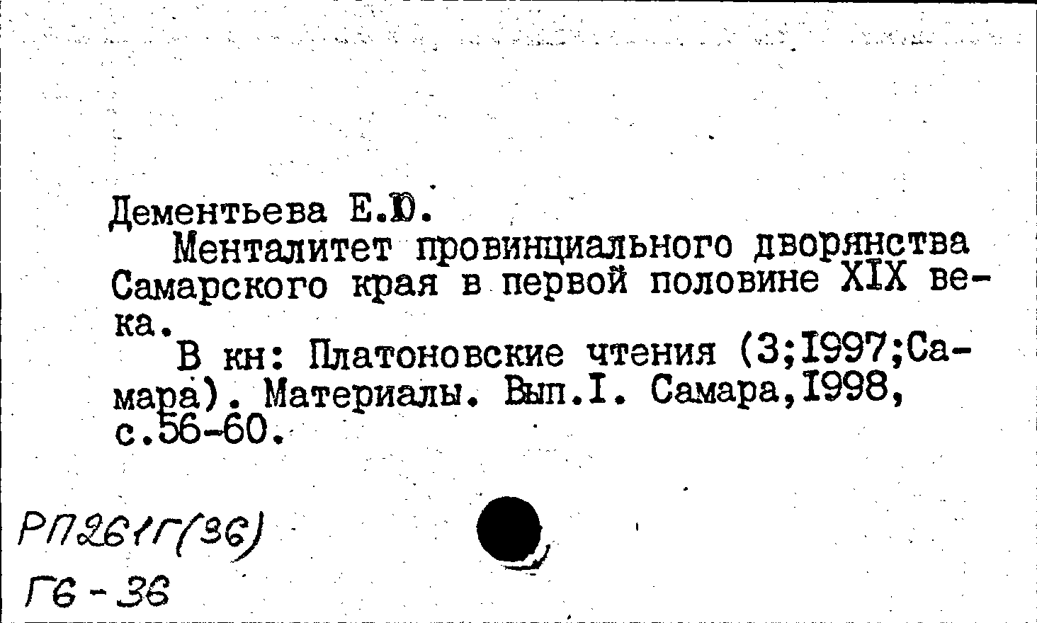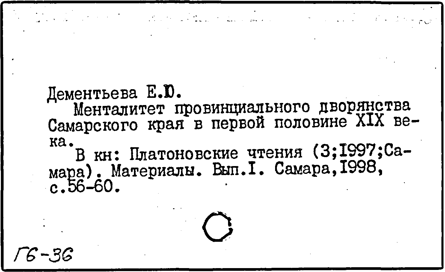 Менталитет провинциального дворянства Самарского края в первой половине XIX века