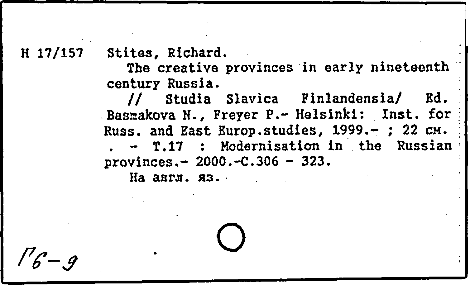 Книга (аналит. описание): The creative provinces in early nineteenth century Russia