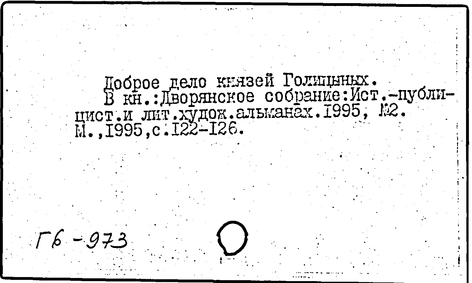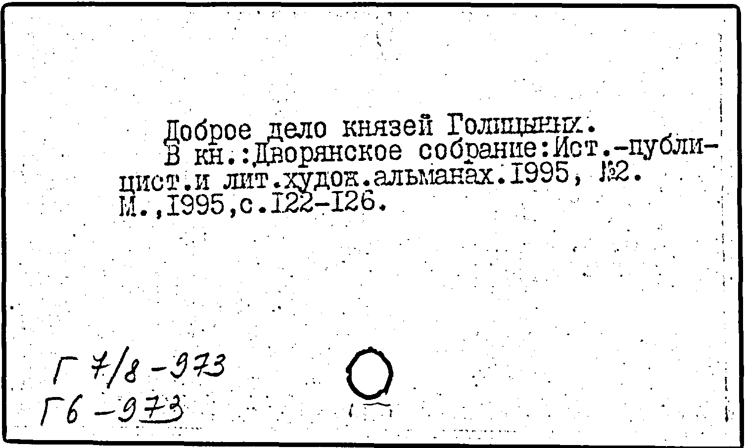 Книга (аналит. описание): Доброе дело князей Голицыных